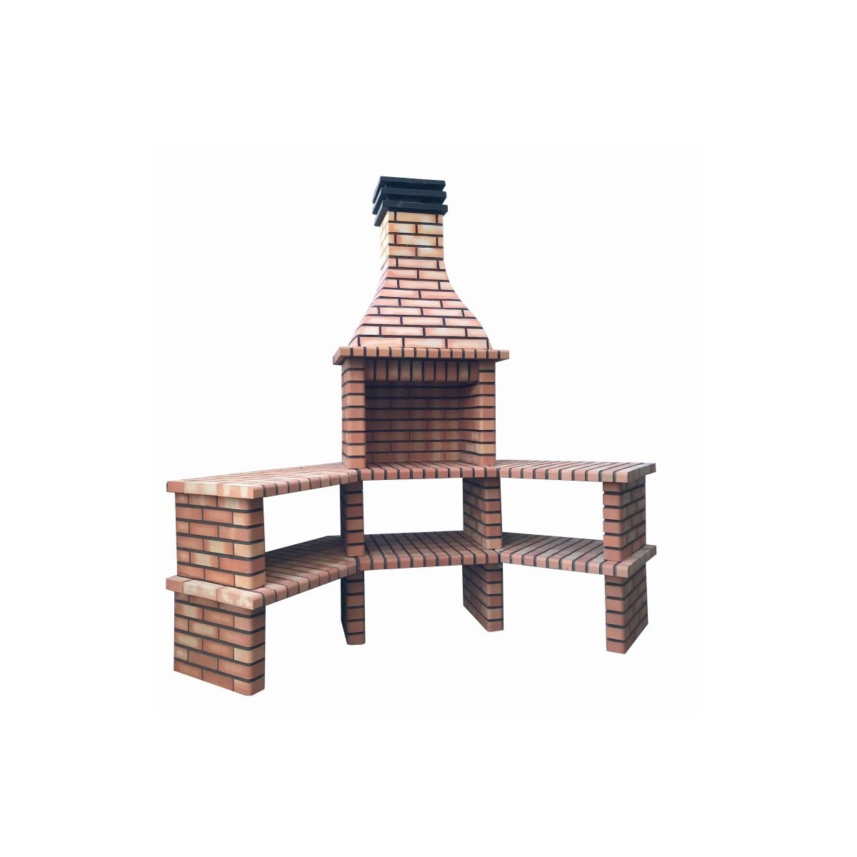 La barbacoa de esquina con chimenea del fabricante Articimentos está diseñada para maximizar el espacio en exteriores, ofreciendo una estructura eficiente y funcional.