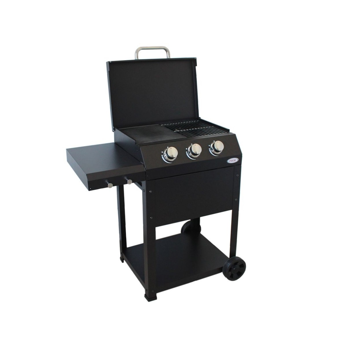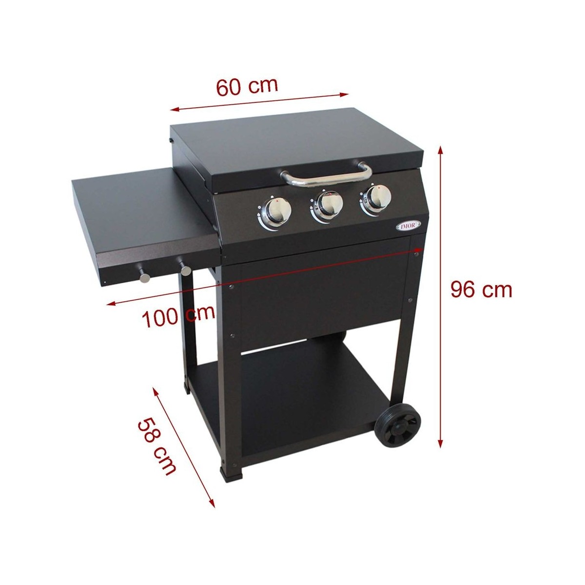 Esta barbacoa funciona con gas butano o propano, lo que proporciona una fuente de calor constante y controlable para cocinar tus alimentos. Cuenta con 3 quemadores de acero inoxidable que ofrecen una potencia de 8,5 KW, asegurando un calentamiento rápido y uniforme de la superficie de cocción.