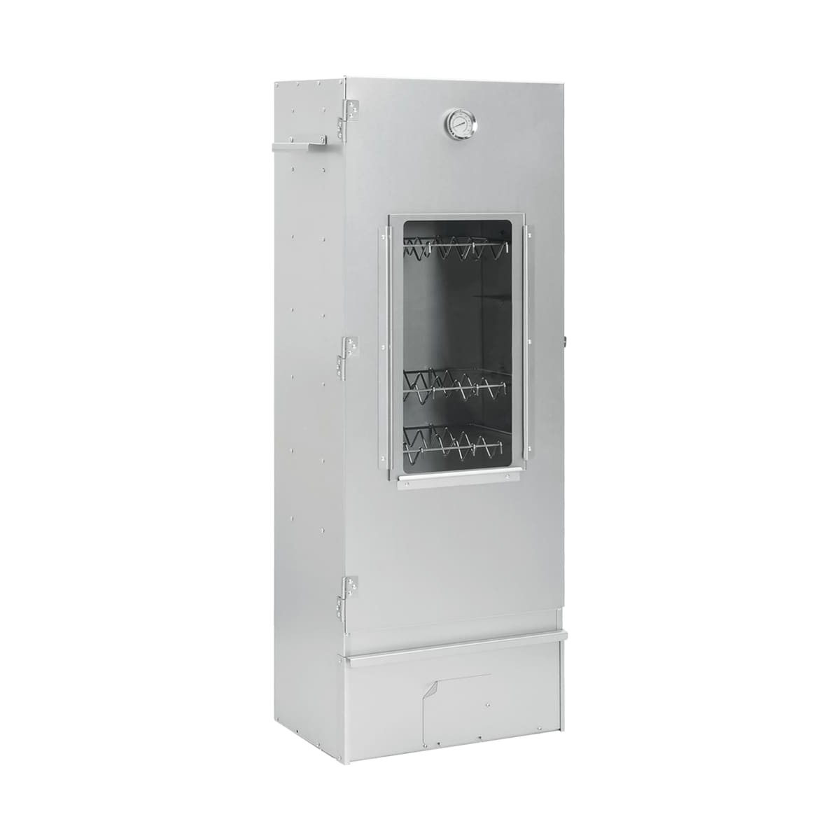 Utiliza este horno de ahumador multiusos con mesa para preparar un banquete y disfruta de un agradable tiempo al aire libre con la familia. Material duradero: El acero es un material muy duro y resistente. Ofrece solidez y estabilidad. El galvanizado protege mejor contra el óxido y es útil para los productos que se van a utilizar al aire libre.Amplio espacio para ahumar: El ahumador de exterior proporciona mucho espacio para ahumar carne, pescado, salchichas, etc. Las rejillas y los ganchos en forma de S incluidos hacen que la barbacoa sea más cómoda.Función indicativa: El horno ahumador está equipado con un termómetro para comprobar la temperatura de la cámara. Gracias a la ventana de vidrio del ahumador, también podrás vigilar los alimentos del interior para garantizar el mejor asado.Tornillo regulable: Puedes ajustar la altura del tornillo negro con el fin de mantener estable la mesa de trabajo sobre superficies irregulares.Estante de almacenaje: La mesa posee 2 estantes abiertos para tener bien organizados y al alcance la harina, el azúcar, los boles, las tablas de cortar y otros utensilios de barbacoa. La resistente superficie de trabajo proporciona un buen soporte, por lo que la mesa es válida para sujetar el horno ahumador. Advertencia:No uses la barbacoa en un espacio cerrado ni habitable, por ejemplo, casas, tiendas de campaña, caravanas, autocaravanas, barcos. Peligro de muerte por intoxicación por monóxido de carbono.
