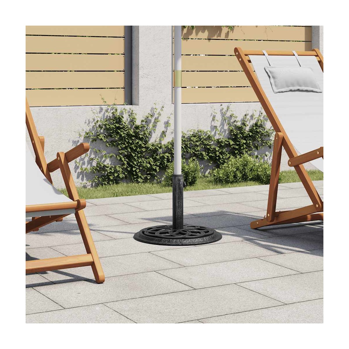 Esta base maciza de sombrilla sirve como una firme y robusta base para tu sombrilla y la mantendrá en su sitio. El material de hierro fundido garantiza una excelente estabilidad. El adaptador suministrado es adecuado para postes de sombrilla con un diámetro de 35, 38 o 48 mm. El pergamino detallado y el patrón floral encantador agregarán un acento elegante a cualquier jardín o espacio al aire libre.