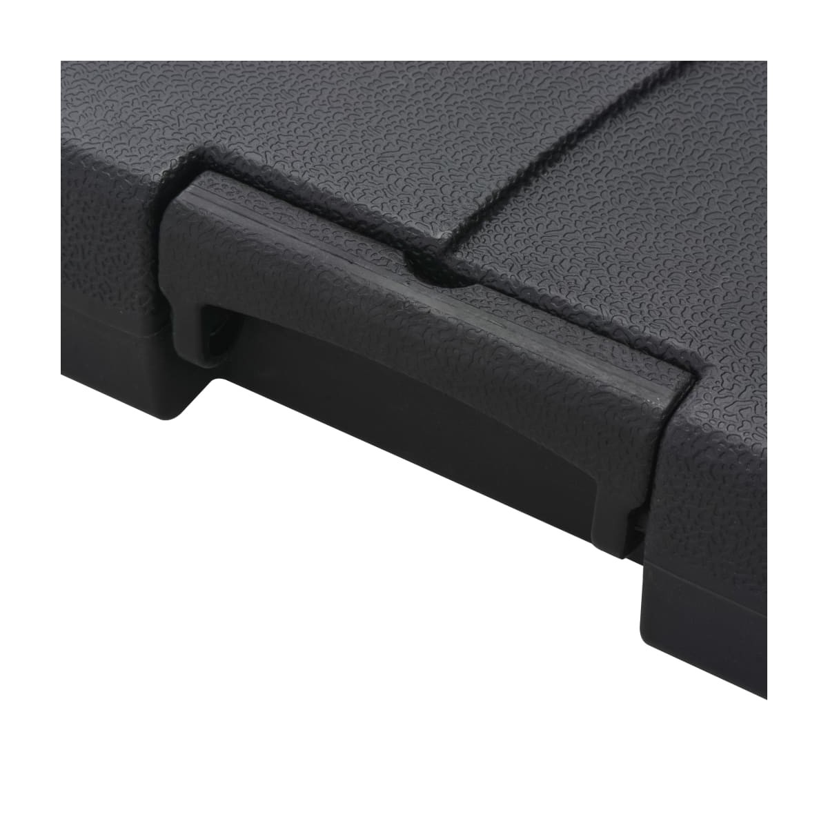 Esta base de sombrilla consta de cuatro partes separadas que están diseñadas para ser rellenadas con agua o arena como lastre. Sirve como una base firme y robusta para sostener la sombrilla. El soporte de parasol se puede llenar con 60 litros de agua o 80 kg de arena. Es ideal para estabilizar sombrillas con base en cruz. Sin el relleno, la base de la sombrilla es muy ligera, lo que facilita su transporte y almacenamiento gracias al diseño del asa. Con nuestra base para sombrilla, ¡tu sombrilla no se moverá!
