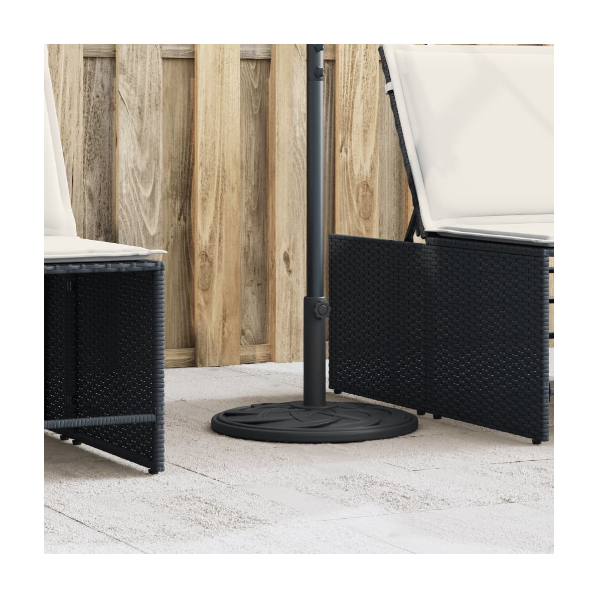 Esta base de sombrilla ofrece una base sólida y fiable para garantizar que tu sombrilla permanezca estable y en posición vertical. Base resistente y estable: Esta base de sombrilla cuenta con una carcasa de plástico resistente rellena de hormigón, que garantiza una estabilidad excepcional para mantener tu sombrilla bien sujeta y evitar que se vuelque, incluso con viento.Fácil de instalar: Esta base de sombrilla tiene una perilla de apriete para asegurar la sombrilla a la base con mayor firmeza.Compatible con múltiples tamaños de poste: Esta base de sombrilla viene con 2 adaptadores de poste, lo que te permite adaptarse a postes de sombrilla con un diámetro de 38 y 48 mm.Bonito patrón de curvas: Diseñado con patrones de curvas, este soporte para sombrillas aporta un toque de elegancia atemporal a su área al aire libre.