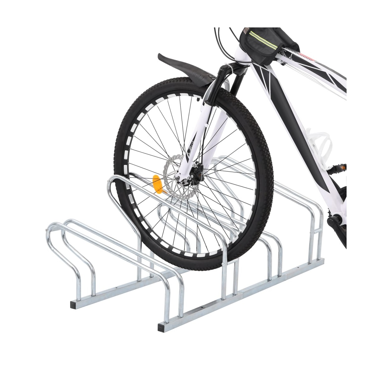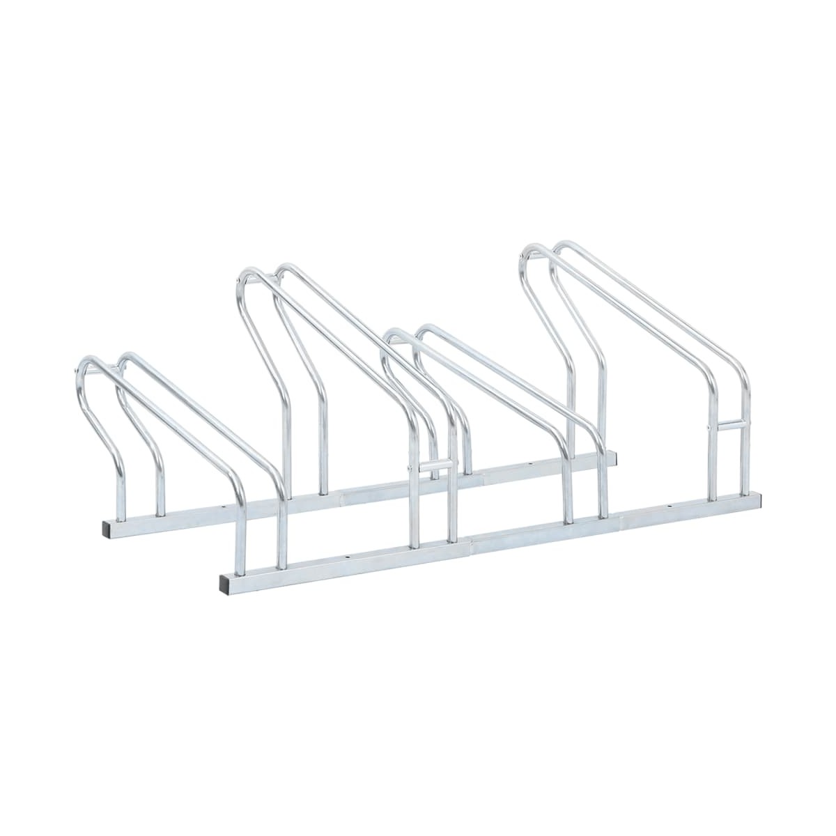 Utiliza este soporte para bicicletas para aparcarlas de forma segura y eficaz, ahorrando un valioso espacio.Robusto y duradero: Este soporte para bicicletas está hecho de acero galvanizado, por lo que es robusto, resistente a la corrosión, duradero y ligero para facilitar su desplazamiento.Ahorra espacio: Este soporte para bicicletas tiene un diseño de rueda alta-baja y acomoda cuatro bicicletas sin que se enrede el manillar, optimizando el espacio para un aparcamiento eficiente.Estructura estable: Puedes sujetar el soporte de la bicicleta de forma segura con los tornillos provistos para evitar que la bicicleta se vuelque o se caiga, asegurándote de que permanezca estable.Amplios usos: El soporte para bicicletas es perfecto para alojar varias bicicletas con neumáticos de hasta 55 mm de ancho y es adecuado para uso en interiores y exteriores en diversos entornos, como garajes, almacenes, escuelas, tiendas, etc.