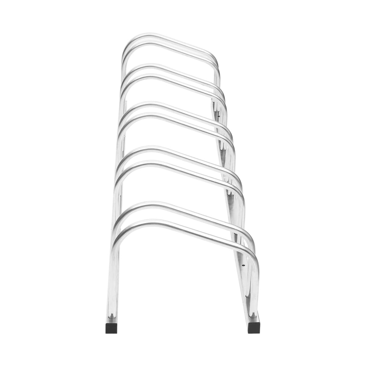 Este portabicicletas de acero galvanizado proporciona una buena solución para guardar bicicletas para familias o pequeñas empresas. Material duradero: El acero es un material muy duro y fuerte. Ofrece solidez y estabilidad. La galvanización brinda una mejor protección contra la corrosión y es útil para productos que se usarán al aire libre y en entornos hostiles.Diseño práctico: El soporte para bicicletas está diseñado para que todas sus bicicletas se mantengan de pie y se mantengan organizadas en el piso. De esta manera, nunca verás un desastre en tu garaje. El diseño de estacionamiento en el suelo ahorra espacio para un lugar limitado y protege tu bicicleta desde cero.Amplia aplicación: Para la familia, poner el bicicletero en el garaje o jardín hace que el hogar esté organizado. Para una pequeña empresa, tenerlo y usar señalización para dirigir a los ciclistas a la zona designada para el estacionamiento de bicicletas es práctico y crea una buena imagen corporativa.Función antirrobo: Los tornillos y tacos se incluyen en la entrega para que este portabicicletas se pueda anclar al suelo y luego puedas bloquear la bicicleta y el portabicicletas para evitar robos.