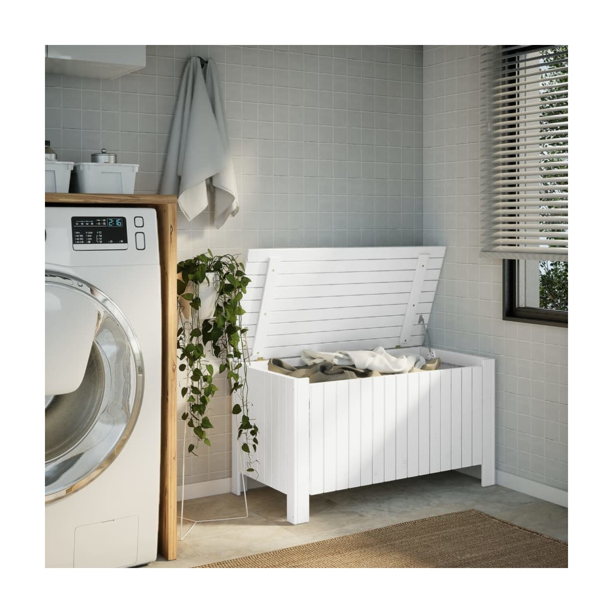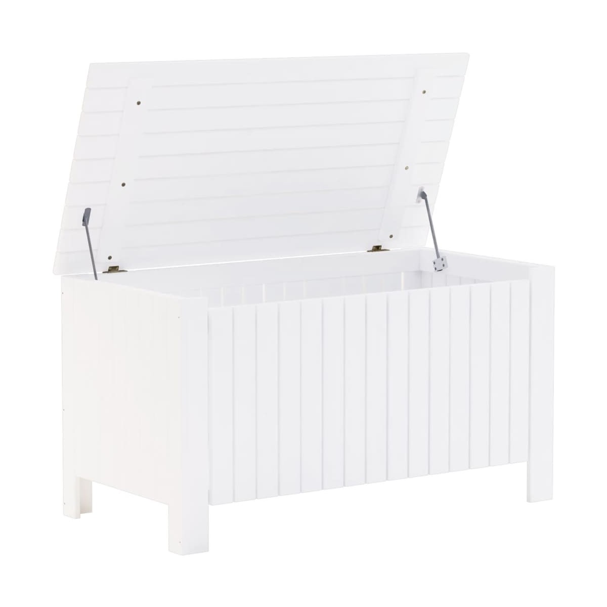 Esta caja de almacenamiento de madera es una solución de almacenamiento ideal y es un gran aporte decorativo para tu hogar. Madera maciza de pino: Este baúl de almacenamiento está hecho de madera maciza de pino. La madera maciza de pino es un bonito material natural. La madera de pino tiene vetas rectas, y los nudos dan al material su distintivo aspecto rústico.Amplio espacio de almacenamiento: Esta caja de almacenamiento ofrece un amplio espacio para mantener bien organizados tu ropa, mantas, juguetes, cojines y otros elementos esenciales diarios.Fácil de abrir y mover: Puedes abrir y cerrar la tapa fácilmente gracias a las bisagras.Diseño de listones: El diseño de listones permite una buena ventilación de las cosas dentro del cofre de almacenamiento.