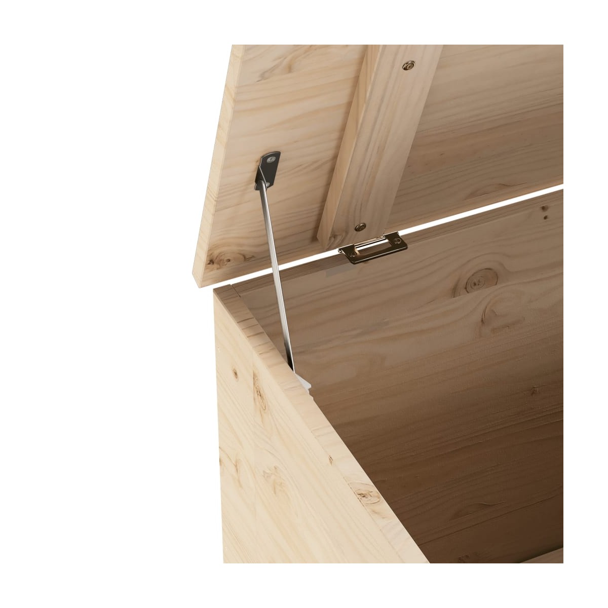 Esta caja de almacenamiento de madera es una solución de almacenamiento ideal y es un gran aporte decorativo para tu hogar. Madera maciza de pino: Este baúl de almacenamiento está hecho de madera maciza de pino. La madera maciza de pino es un bonito material natural. La madera de pino tiene vetas rectas, y los nudos dan al material su distintivo aspecto rústico.Amplio espacio de almacenamiento: Esta caja de almacenamiento ofrece un amplio espacio para mantener bien organizados tu ropa, mantas, juguetes, cojines y otros elementos esenciales diarios.Fácil de abrir y mover: Puedes abrir y cerrar la tapa fácilmente gracias a las bisagras.Tapa práctica: El cofre de almacenamiento viene con una tapa, que no solo evita que los artículos se llenen de polvo, sino que también agrega seguridad.Superficie sin tratar: Como la caja de almacenamiento está hecha de madera maciza de pino sin acabado, puedes mantener su color natural, pero también puedes pintarla o lacarla según tus preferencias.
