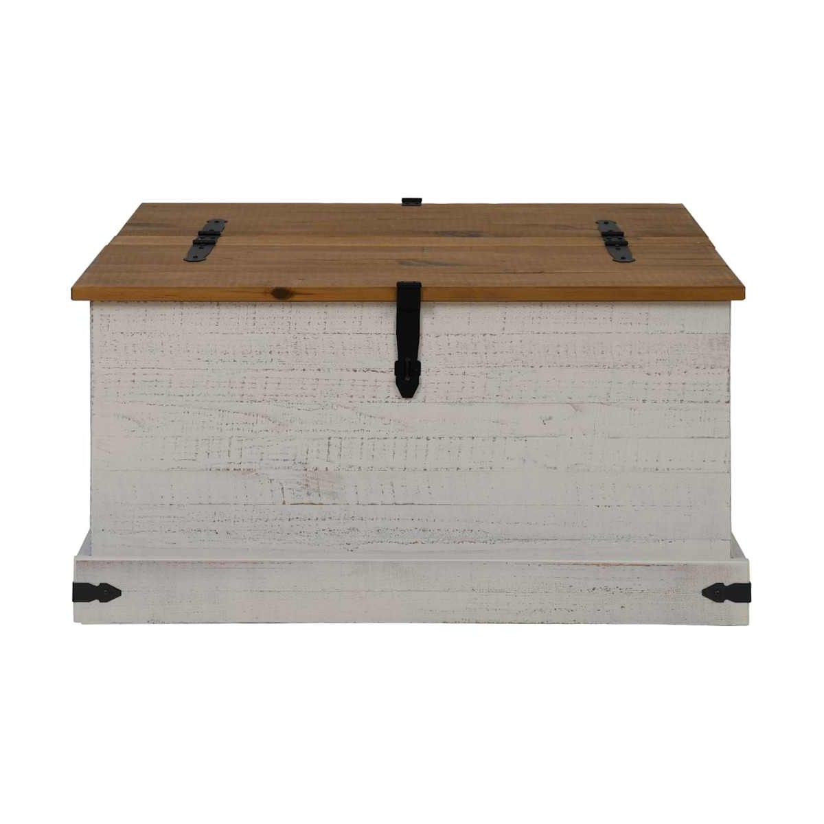 El arcón de almacenamiento de la gama HALDEN está diseñado para aportar funcionalidad y atractivo estético a su espacio vital. Material duradero: La madera maciza de pino es un bonito material natural conocido por su durabilidad y longevidad. Su veta recta contribuye a su atractivo, mientras que los nudos le confieren ese distintivo aspecto rústico.Amplio espacio de almacenamiento: sus espaciosos compartimentos dobles brindan soluciones de almacenamiento para mantener su ropa, mantas, juguetes, cojines y otros elementos esenciales diarios bien organizados.Manijas de metal: Para mejorar su durabilidad, el baúl de almacenamiento doble está equipado con manijas de metal que no solo facilitan su movimiento, sino que también le agregan belleza adicional.Amplias aplicaciones: con una parte superior estable, el cofre de almacenamiento proporciona una superficie segura para bocadillos, bebidas, jarrones, fruteros u otros artículos decorativos y también puede servir como mesa de café o mesa auxiliar.