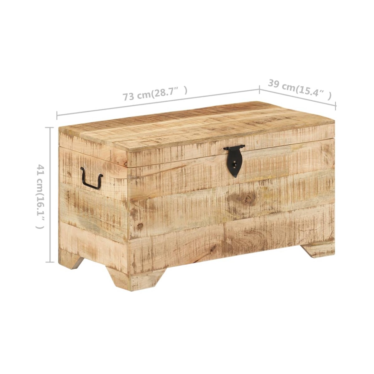 Este clásico baúl de madera es un complemento atemporal para tu casa. Esta caja de almacenamiento está hecha de madera de mango rugosa, que es sólida, estable y elegante. La artesanía le aporta un espectacular estilo retro. Ofrece un amplio espacio de almacenamiento para ropa, revistas, libros, herramientas y otros accesorios. Tiene un pestillo en la parte delantera y dos asas en el lateral. Con una parte superior estable, esta caja de madera también se puede usar como mesa de centro, mesita de sofá, mesa del salón, mesa auxiliar, etc. La artesanía y las bonitas vetas de la madera hacen que cada mueble sea único y ligeramente diferente al resto. Nota: Los colores y las vetas varían de una pieza a otra, por lo que cada uno de los baúles de almacenaje es único. La entrega es aleatoria, lo que garantiza la exclusividad y la individualidad del producto.