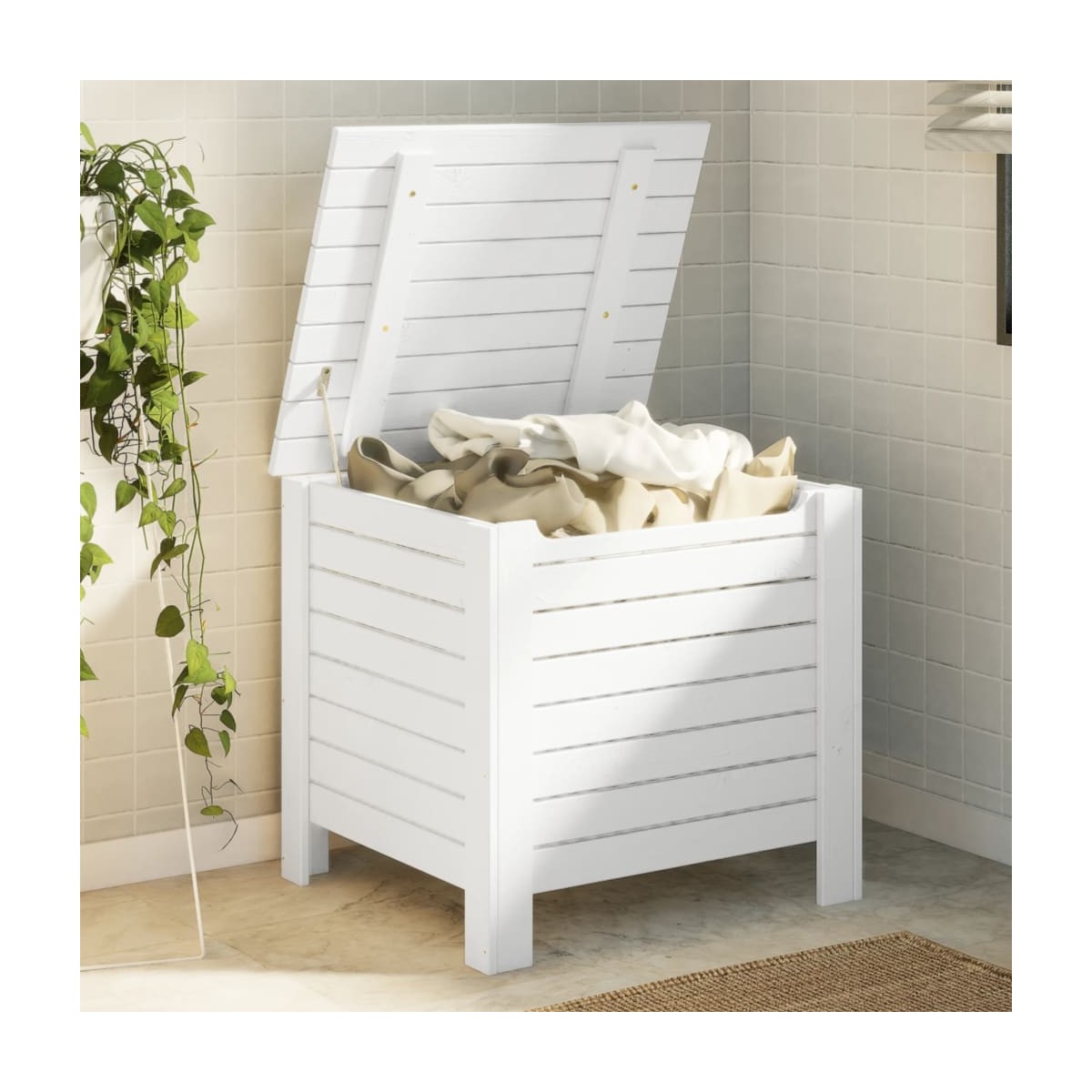 Esta caja de almacenamiento de madera es una solución de almacenamiento ideal y es un gran aporte decorativo para tu hogar. Madera maciza de pino: Este baúl de almacenamiento está hecho de madera maciza de pino. La madera maciza de pino es un bonito material natural. La madera de pino tiene vetas rectas, y los nudos dan al material su distintivo aspecto rústico.Amplio espacio de almacenamiento: Esta caja de almacenamiento ofrece un amplio espacio para mantener bien organizados tu ropa, mantas, juguetes, cojines y otros elementos esenciales diarios.Fácil de abrir y mover: Puedes abrir y cerrar la tapa fácilmente gracias a las bisagras.Diseño de listones: El diseño de listones permite una buena ventilación de las cosas dentro del cofre de almacenamiento.