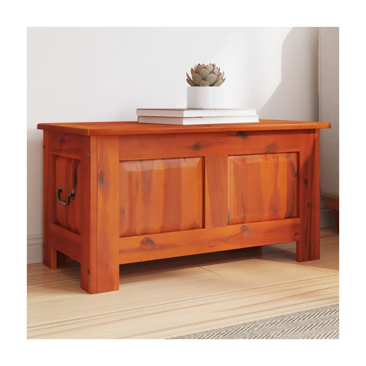 Este baúl de almacenamiento con tapa es una solución de almacenamiento ideal para tu hogar. Duradero y robusto: La madera maciza de acacia es un bonito material natural. La madera de acacia es una madera dura tropical, densa, robusta y duradera.Amplio espacio de almacenamiento: Esta caja de almacenamiento ofrece un amplio espacio para mantener bien organizados tu ropa, mantas, juguetes, cojines y otros elementos esenciales diarios.Fácil de abrir y cerrar: El mecanismo de elevación de gas garantiza que la tapa de la caja de juguetes se pueda abrir y cerrar lentamente sin pellizcarse los dedos.Usos versátiles: El cofre de almacenamiento es versátil y se puede utilizar como banco en la cama, mesa de centro en el salón, baúl de almacenamiento en el pasillo o baúl de juguetes para tus hijos.