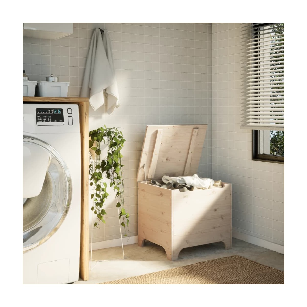 Esta caja de almacenamiento de madera es una solución de almacenamiento ideal y es un gran aporte decorativo para tu hogar. Madera maciza de pino: Este baúl de almacenamiento está hecho de madera maciza de pino. La madera maciza de pino es un bonito material natural. La madera de pino tiene vetas rectas, y los nudos dan al material su distintivo aspecto rústico.Amplio espacio de almacenamiento: Esta caja de almacenamiento ofrece un amplio espacio para mantener bien organizados tu ropa, mantas, juguetes, cojines y otros elementos esenciales diarios.Fácil de abrir y mover: Puedes abrir y cerrar la tapa fácilmente gracias a las bisagras.Tapa práctica: El cofre de almacenamiento viene con una tapa, que no solo evita que los artículos se llenen de polvo, sino que también agrega seguridad.Superficie sin tratar: Como la caja de almacenamiento está hecha de madera maciza de pino sin acabado, puedes mantener su color natural, pero también puedes pintarla o lacarla según tus preferencias.