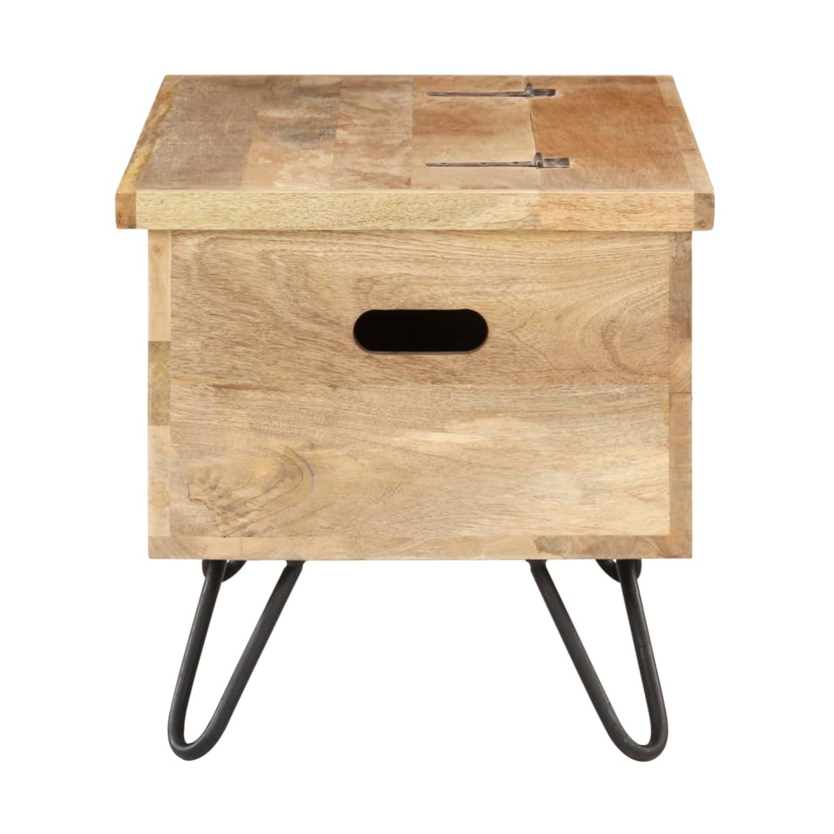 El cofre de madera inteligente agrega un aspecto simple a la decoración de tu hogar y brinda un amplio espacio de almacenamiento para ropa, revistas, libros, juguetes, herramientas y otros accesorios. El cofre está hecho de madera maciza de mango, una madera dura tropical con la fuerza para soportar el peso. También resiste el desgaste del tiempo, lo que lo hace estable y duradero. Las patas de acero proporcionan una estabilidad adicional. Esta caja de almacenamiento, con una parte superior plana estable, también se puede utilizar como banco de pasillo. La artesanía y las hermosas vetas de la madera hacen que cada mueble sea único y ligeramente diferente al siguiente. Nota importante: Los colores y las vetas de la madera pueden variar de una pieza a otra, por lo que cada una es única; la entrega es aleatoria.
