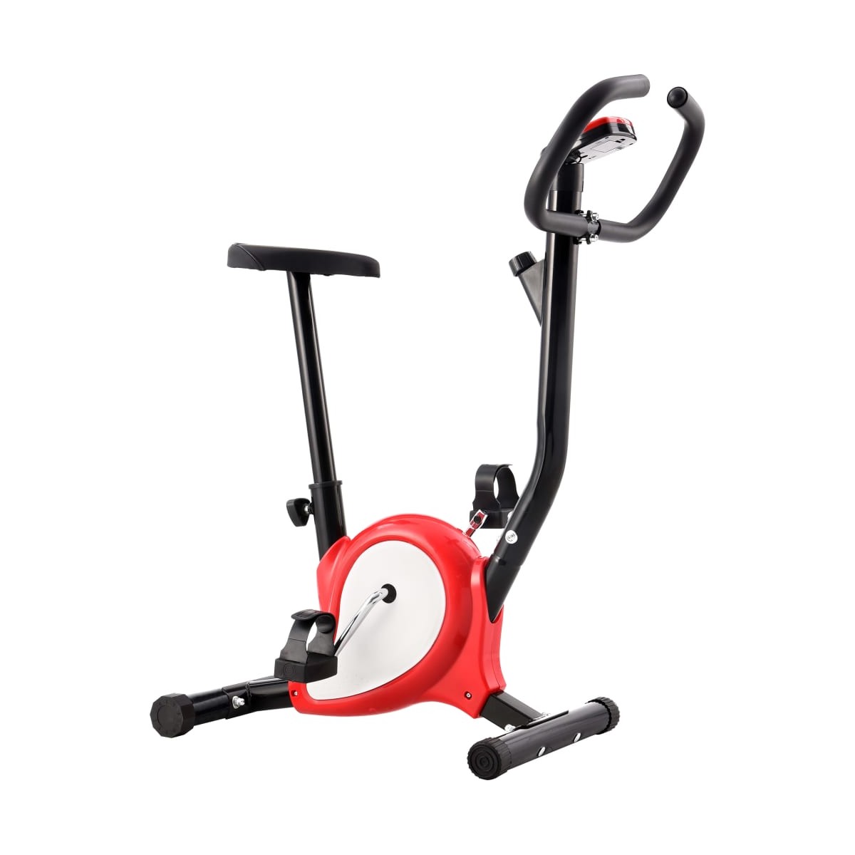 Esta robusta bicicleta estática será una excelente opción para hacer ejercicio en casa. Está equipada con un mecanismo de resistencia de correa y pantalla LCD y un sillín ajustable, lo que le brinda un entrenamiento eficiente. Puedes controlar tu rendimiento en la pantalla LCD que muestra información sobre el tiempo transcurrido, velocidad actual real, distancia, las calorías quemadas y el odómetro. La bicicleta de fitness tiene un diseño ergonómico. El sillín se puede ajustar verticalmente para adaptarse a tu altura. Los pedales antideslizantes permiten una transferencia óptima de potencia de sus pies a los pedales. Las correas de los pedales evitarán que sus pies se resbalen accidentalmente de los pedales. La bicicleta de fitness necesita montaje. Nota: Esta es una bicicleta de fitness para principiantes. Tiene un mecanismo de resistencia simple sin volante. Esta bicicleta no es apta para personas altas: antes de comprar, comprueba cuidadosamente el tamaño.