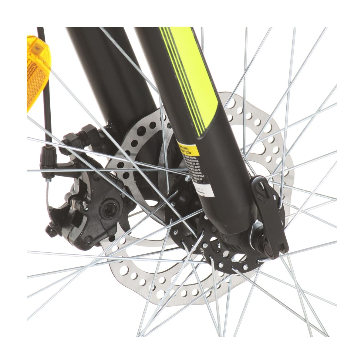 ¡Haz tu ruta favorita con esta bicicleta de montaña! Esta bicicleta con neumáticos anchos de 27,5 te ofrece una experiencia de conducción suave incluso en terrenos accidentados. La estructura de acero y la horquilla de suspensión mantienen la marcha suave, mientras que las llantas de aluminio resistentes y ligeras brindan mayor estabilidad. La motivación viene en forma de una transmisión de 21 velocidades con un desviador Shimano delantero y trasero. La tija del sillín ajustable sin herramientas facilita encontrar un ajuste cómodo. Puedes viajar alto o bajo con gran facilidad. Los frenos de disco están diseñados para una frenada nítida en cualquier condición.