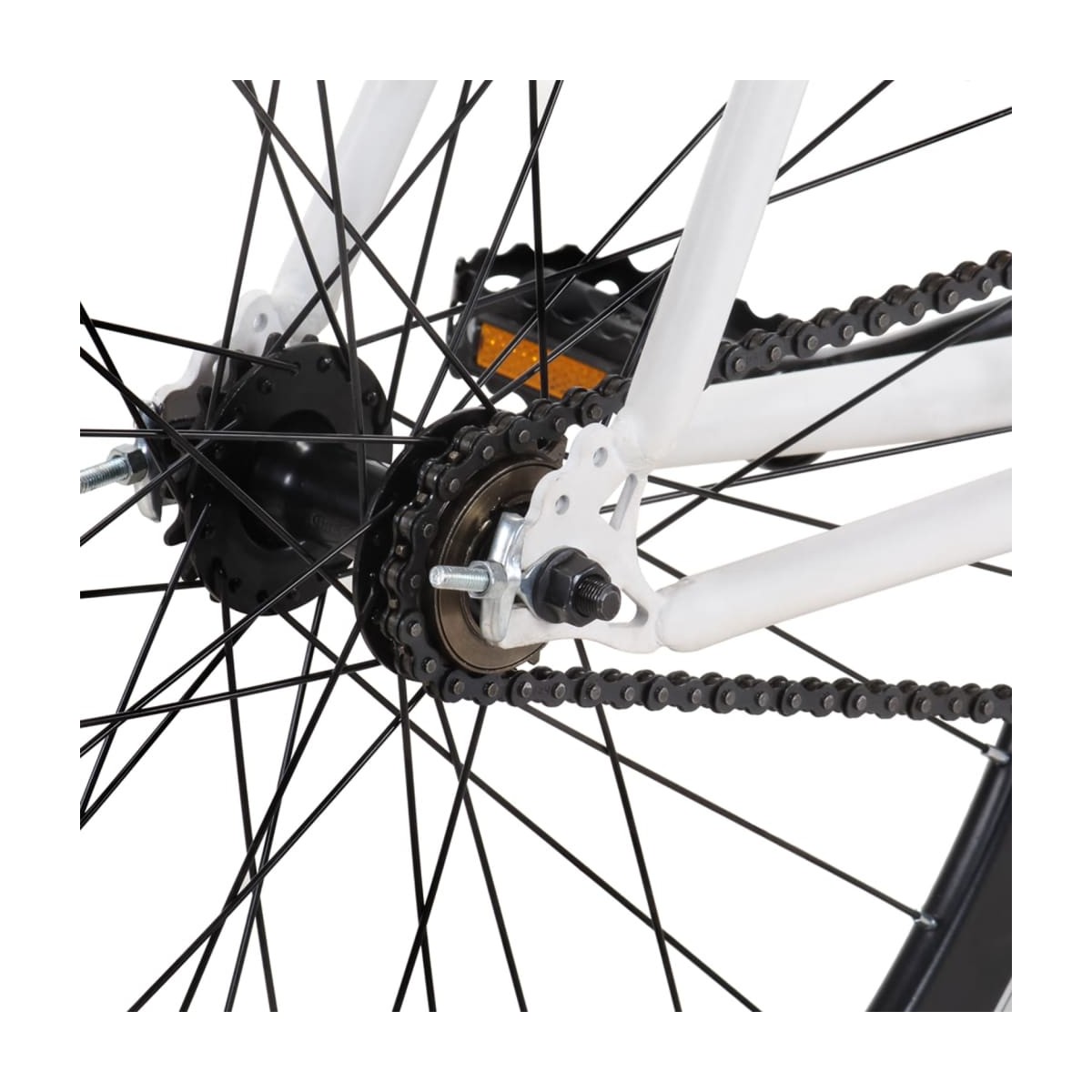 Esta bicicleta de piñón fijo es perfecta para desplazarse al trabajo, ponerse en forma o simplemente salir a pasear con la familia para disfrutar del aire libre. Cómoda: La bicicleta de piñón fijo está equipada con un ligero cuadro de aluminio, que hace que la bicicleta sea más ligera que otras bicicletas y facilita mucho su manejo.Seguridad: La bicicleta de una sola velocidad está equipada con dispositivos reflectantes para mejorar tu visibilidad. Tanto si circulas al atardecer como de noche, estas características garantizan que los peatones, conductores y compañeros ciclistas se fijen en ti. Además, los fiables frenos de pinza en ambas ruedas gestionan eficazmente la deceleración.Robusta y resistente: La bicicleta de una sola velocidad cuenta con un cuadro soldado con tig, lo que garantiza su durabilidad además de mantener un diseño moderno.Versátil: La bicicleta de una sola marcha, equipada con un buje flip-flop, te ofrece la flexibilidad de cambiar entre marchas fijas y modo de rueda libre. Tanto si te mueves por las calles de la ciudad como si corres en la pista, este diseño adaptable te garantiza una conducción cómoda. Información útil:Sigue siempre los requisitos legales locales en materia de iluminación, reflectores y otras medidas de seguridad cuando circules en bicicleta. El incumplimiento de estas normas puede acarrear restricciones para circular por zonas públicas.