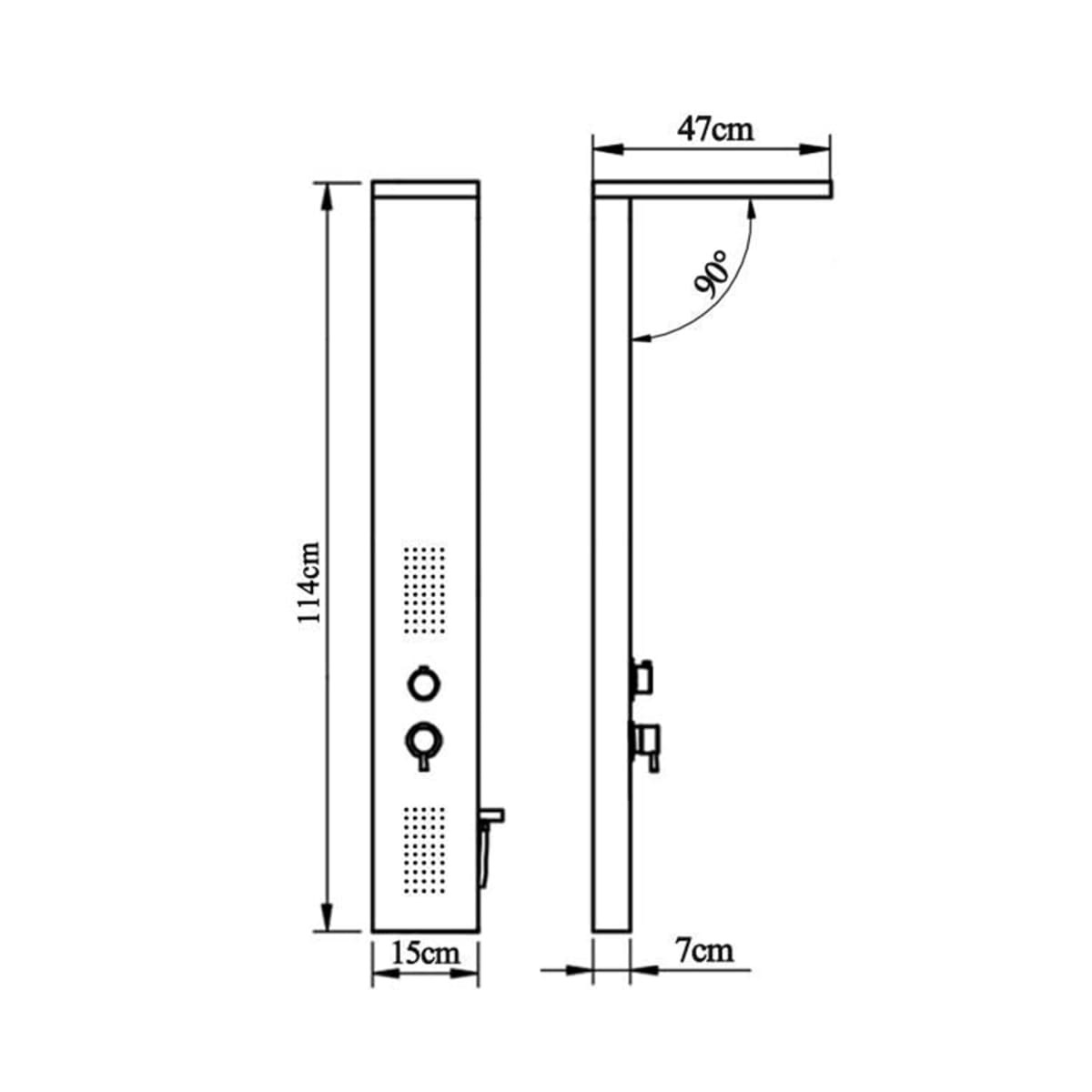 Este sistema de panel de ducha multiusos tiene un diseño elegante y será un gran aporte para el cuarto de baño. El panel de ducha está hecho de duradero aluminio y tiene un diseño cuadrado muy bonito. Cuenta con cuatro funciones: lluvia, cascada, chorros de masaje y cabezal de mano, que se pueden seleccionar fácilmente por medio de una perilla. ¡Sumérgete en una experiencia de ducha verdaderamente relajante y disfruta del estilo moderno de este sistema de panel de ducha con un espectacular diseño!