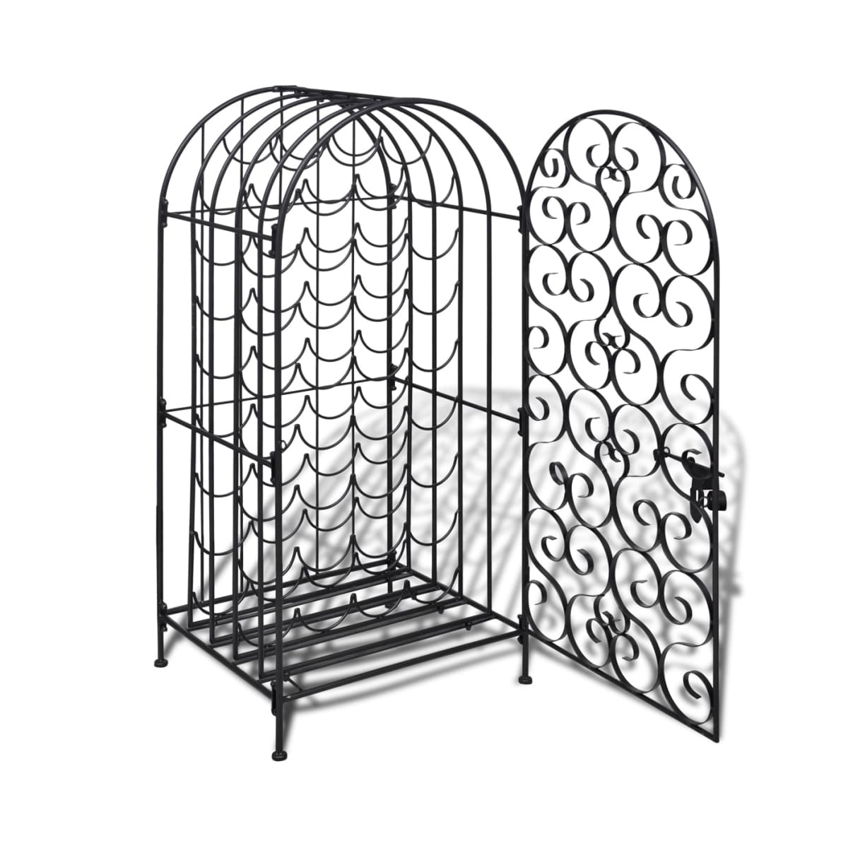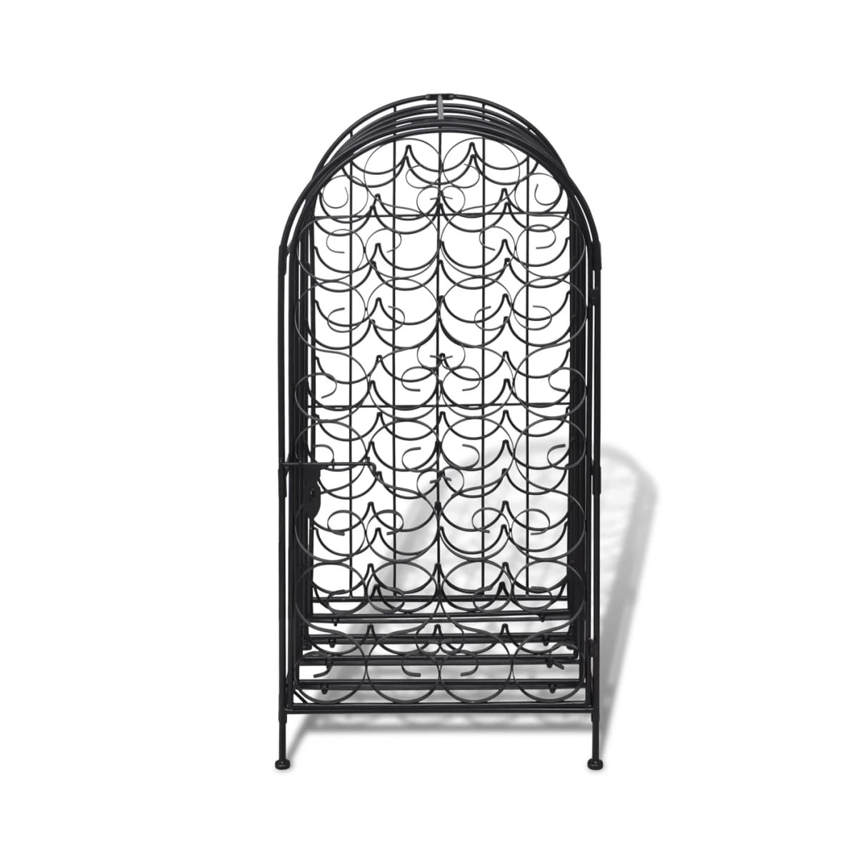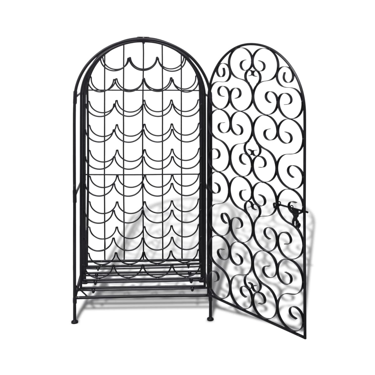 Este botellero es un verdadero atractivo dondequiera que se coloque. Hecho de hierro forjado, este botellero tiene un completo recubrimiento en polvo para que no se oxide ¡durará por generaciones! Este organizador de vinos es ideal para colocar hasta 35 botellas de vino detrás de la puerta de cierre lateral. Su estilo clásico y elegante traerá una sensación romántica. También será un gran regalo para sus amigos y conocidos amantes del vino. ¡Trae este elegante estante para vinos a casa y disfruta de la vida con él! Advertencia: Para evitar que se vuelque, este producto debe usarse con el dispositivo de fijación a la pared provisto.