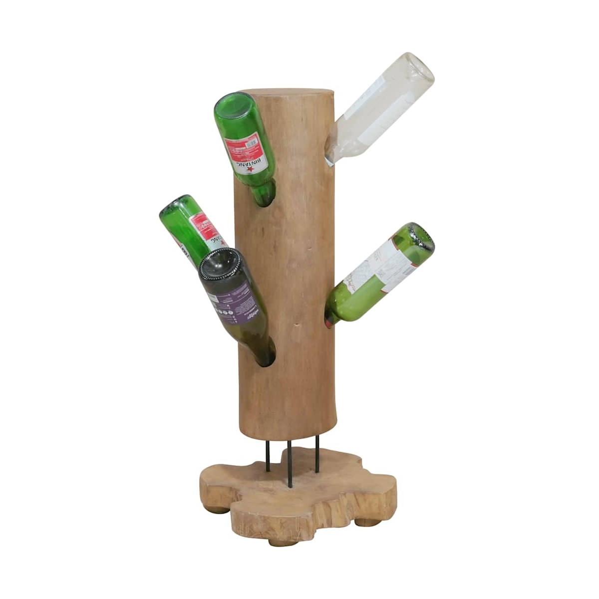 Nuestro botellero de madera mantiene tu colección de vinos organizada y a tu alcance mientras le da un toque de estilo vintage a tu hogar. Este botellero de vino está hecho con varilla de hierro y madera de teca, mezclada con otras maderas duras como madera de acacia y madera de mindi, lo que lo hace estable y duradero. El cuerpo y la base irregulares dan un look especial para tu hogar. Tiene capacidad para 8 botellas de vino de tamaño estándar y se ve bonito en cualquier cocina o salón. Nota importante: Los colores y las vetas de la madera pueden variar de una pieza a otra, por lo que cada una es única; la entrega es aleatoria.