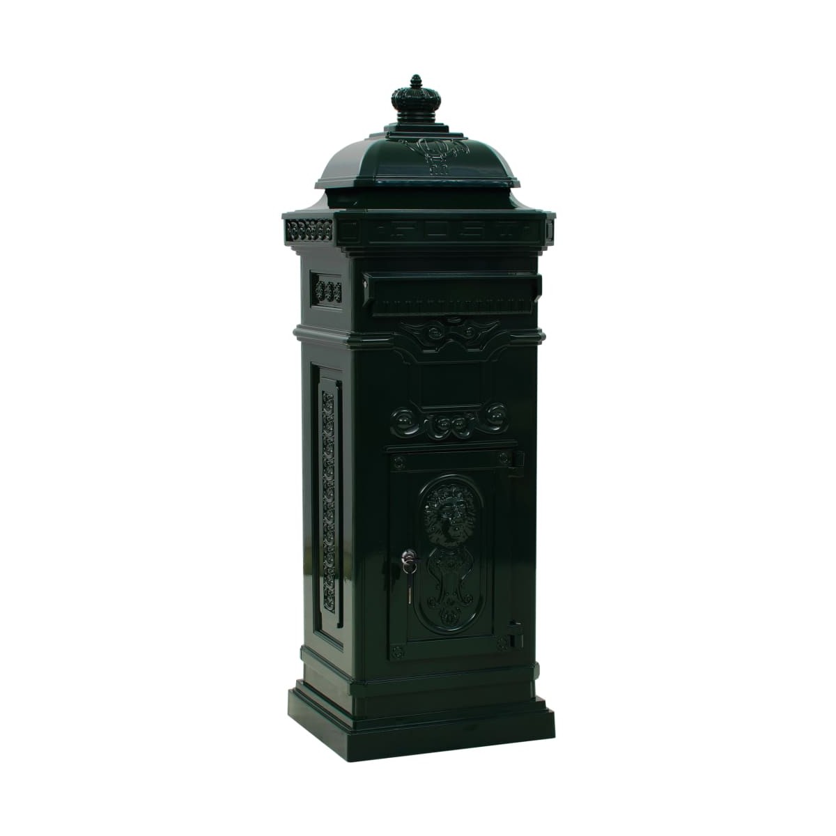 Nuestro precioso buzón de columna de estilo antiguo será un aporte práctico y decorativo para su jardín o entrada principal, o su lugar de trabajo. Este buzón está diseñado con una amplia ranura para el correo que incorpora una aleta para proteger el contenido de los elementos climáticos y dos puertas con cerradura (se incluyen 2 llaves para cada puerta) que le permitirán sacar sus cartas fácilmente. El buzón está hecho de aluminio fundido resistente al óxido y a la intemperie, por lo que es adecuado para su uso al aire libre. Está adornado con abundantes y exquisitos detalles estilo vintage y será un verdadero foco de atención en su patio o camino de entrada.