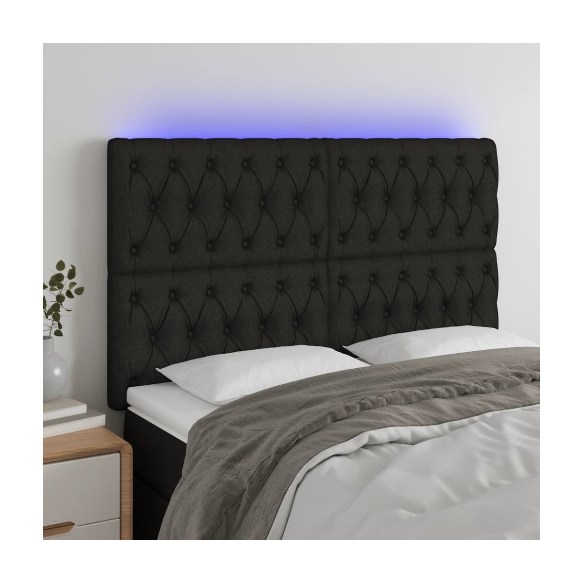 Este clásico cabecero con LED , con un diseño elegante, da a la estructura de tu cama un impresionante toque moderno y se adapta perfectamente a cualquier dormitorio. Material de primera calidad: La tela posee un aspecto sencillo y limpio, y es transpirable y duradera.LED de colores: Alegra la oscuridad con luces LED de colores.Altura regulable: El cabecero de la cama es ajustable en altura según tus preferencias.Excelente apoyo: El cabecero de la cama te proporciona un excelente apoyo para la espalda mientras estás sentado en la cama para leer o ver la televisión.Tira LED recortable: Puedes ajustar la longitud de esta tira LED flexible. El símbolo de las tijeras indica dónde se puede cortar la tira sin dañarla. Nota: La lona impermeable no está incluidaÚnicamente puedes cortar por la parte con el símbolo de las tijeras y únicamente la parte con el USB seguirá funcionando como antes.Cada producto viene con un manual de montaje en la caja para facilitar el montaje.El producto tiene un conector USB, pero no se incluye la fuente de alimentación USB de 5 V certificada.