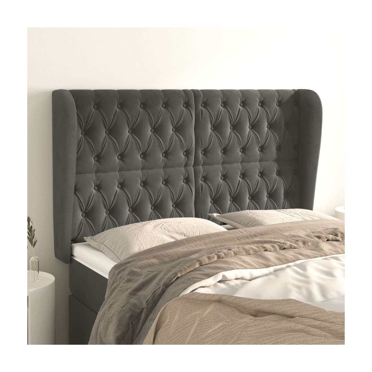 Este cabecero con orejas clásico con un diseño elegante da un aspecto completo a la estructura de tu cama y se adapta a cualquier dormitorio. Terciopelo suave: El terciopelo es una tela suave y lujosa, reconocida por su denso pelo de fibras cortadas de forma uniforme que tienen una suave pelusa. La tela de terciopelo posee un característico y suave tacto, lo que hace que sea cómoda al tacto.Patas robustas y estables: Las patas de madera garantizan la robustez y la estabilidad.Altura regulable: El cabecero de la cama es ajustable en altura según tus preferencias.Excelente apoyo: El cabecero de la cama te proporciona un excelente apoyo para la espalda mientras estás sentado en la cama para leer o ver la televisión. Nota:La entrega incluye sólo el cabecero de la cama. La estructura de cama y el colchón no están incluidos. Puedes consultar en nuestra tienda las estructuras y colchones a juego.Cada producto viene con un manual de montaje en la caja para facilitar el montaje.