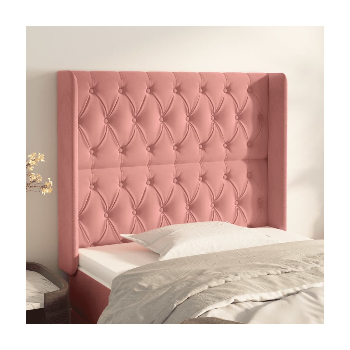 Este cabecero con orejas clásico con un diseño elegante da un aspecto completo a la estructura de tu cama y se adapta a cualquier dormitorio. Terciopelo suave: El terciopelo es una tela suave y lujosa, reconocida por su denso pelo de fibras cortadas de forma uniforme que tienen una suave pelusa. La tela de terciopelo posee un característico y suave tacto, lo que hace que sea cómoda al tacto.Patas robustas y estables: Las patas de madera garantizan la robustez y la estabilidad.Altura regulable: El cabecero de la cama es ajustable en altura según tus preferencias.Excelente apoyo: El cabecero de la cama te proporciona un excelente apoyo para la espalda mientras estás sentado en la cama para leer o ver la televisión. Nota:La entrega incluye sólo el cabecero de la cama. La estructura de cama y el colchón no están incluidos. Puedes consultar en nuestra tienda las estructuras y colchones a juego.Cada producto viene con un manual de montaje en la caja para facilitar el montaje.