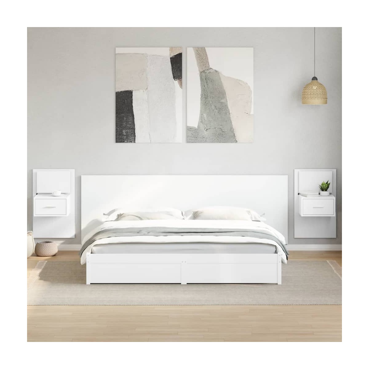 Este robusto cabecero de cama con mesitas presenta un diseño clásico que proporciona un aspecto completo a la estructura de tu cama y encaja en cualquier dormitorio. Material estable y duradera: La madera de ingeniería es un material duradero y estable con una superficie lisa que es resistente a la humedad, la deformación y la división, lo que la convierte en una opción confiable para una variedad de proyectos. Diseño montado en la pared: Las mesitas de noche flotantes y el cabecero se pueden montar en la pared. De este modo, podrás aprovechar al máximo el espacio del suelo y mantener la zona limpia. Luces LED RGB para un ambiente agradable: La mesita cuenta con luces LED que se pueden ajustar fácilmente para crear un espectáculo de luces personalizado. Puedes personalizar los modos, los colores y el brillo para mejorar el ambiente de tu espacio interior. Espacio de almacenamiento: La mesita de noche cuenta con un amplio espacio de almacenamiento que te permite mantener tus cosas organizadas. Fácil de mantener: Gracias a su superficie lisa, el mueble del dormitorio es fácil de limpiar con un paño húmedo y requiere menos mantenimiento. Información útil:Los tornillos y los tacos para el interior de la pared no están incluidos. Recomendamos encontrar y utilizar tornillos y tacos adecuados específicamente para las paredes. Si no estás seguro, puedes consultar con un profesional. Lee y sigue cada paso de las instrucciones. El producto tiene un conector USB que necesita una fuente de alimentación USB certificada de 5 V (no incluida).