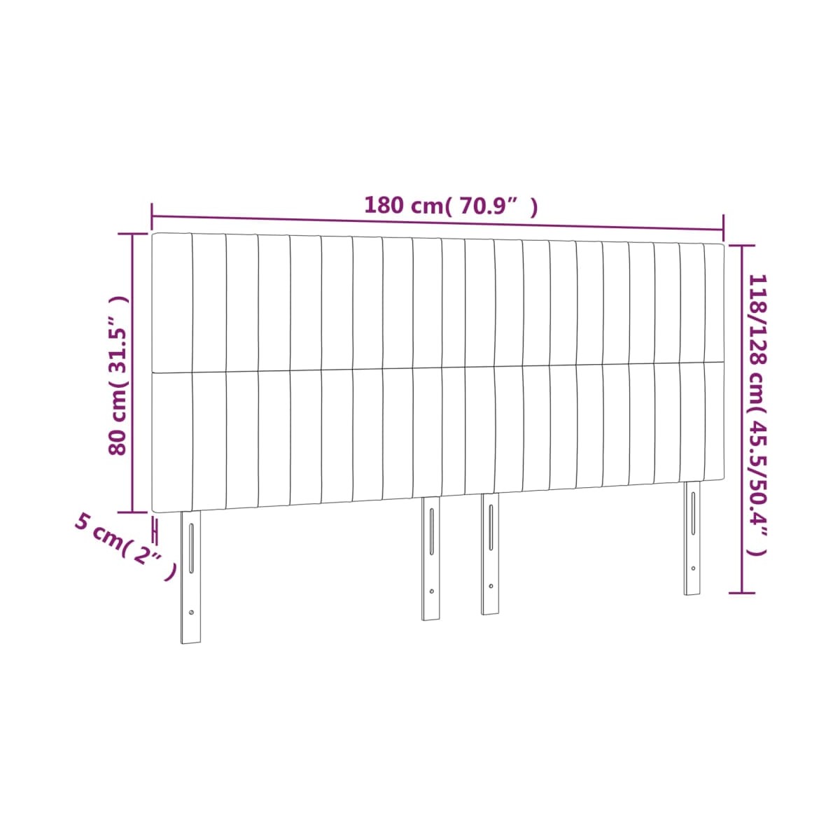 - Dimensiones totales: 180 x 5 x 118/128 cm (ancho x profundo x alto)