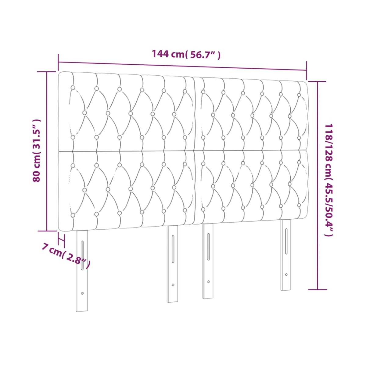 Estos cabeceros clásicos con un diseño elegante dan un aspecto completo a la estructura de tu cama y se adaptan a cualquier dormitorio. Terciopelo suave: El terciopelo es una tela suave y lujosa, reconocida por su denso pelo de fibras cortadas de forma uniforme que tienen una suave pelusa. La tela de terciopelo posee un característico y suave tacto, lo que hace que sea cómoda al tacto.Patas robustas y estables: Las patas de madera garantizan la robustez y la estabilidad.Altura regulable: El cabecero de la cama es ajustable en altura según tus preferencias.Excelente apoyo: El cabecero de la cama te proporciona un excelente apoyo para la espalda mientras estás sentado en la cama para leer o ver la televisión. Nota:La entrega incluye sólo el cabecero de la cama. La estructura de cama y el colchón no están incluidos. Puedes consultar en nuestra tienda las estructuras y colchones a juego.Cada producto viene con un manual de montaje en la caja para facilitar el montaje.