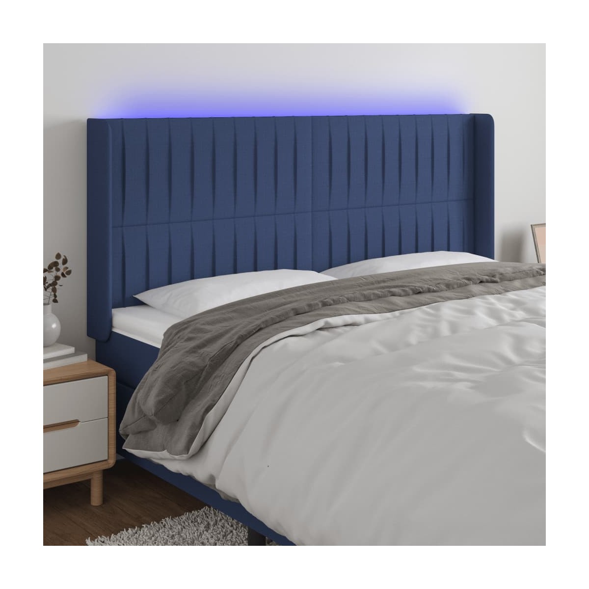 Este clásico cabecero con LED , con un diseño elegante, da a la estructura de tu cama un impresionante toque moderno y se adapta perfectamente a cualquier dormitorio. Material de primera calidad: La tela posee un aspecto sencillo y limpio, y es transpirable y duradera.LED de colores: Alegra la oscuridad con luces LED de colores.Altura regulable: El cabecero de la cama es ajustable en altura según tus preferencias.Excelente apoyo: El cabecero de la cama te proporciona un excelente apoyo para la espalda mientras estás sentado en la cama para leer o ver la televisión.Tira LED recortable: Puedes ajustar la longitud de esta tira LED flexible. El símbolo de las tijeras indica dónde se puede cortar la tira sin dañarla. Nota: La lona impermeable no está incluidaÚnicamente puedes cortar por la parte con el símbolo de las tijeras y únicamente la parte con el USB seguirá funcionando como antes.Cada producto viene con un manual de montaje en la caja para facilitar el montaje.El producto tiene un conector USB, pero no se incluye la fuente de alimentación USB de 5 V certificada.