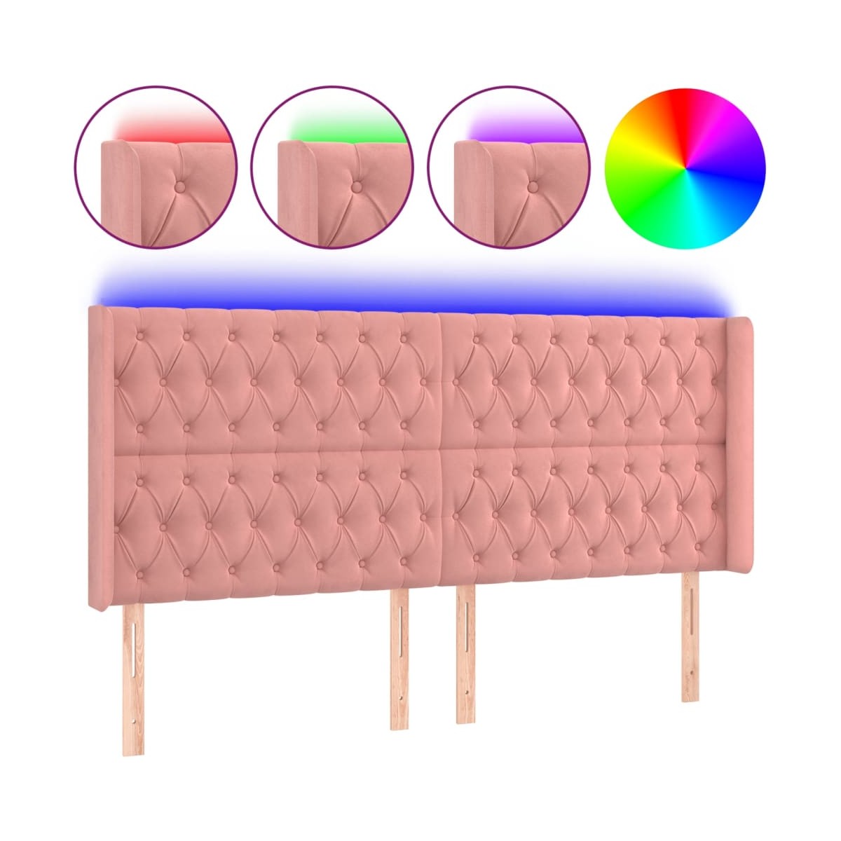 Este clásico cabecero con LED , con un diseño elegante, da a la estructura de tu cama un impresionante toque moderno y se adapta perfectamente a cualquier dormitorio. Terciopelo suave: El terciopelo es una tela suave y lujosa, reconocida por su denso pelo de fibras cortadas de forma uniforme que tienen una suave pelusa. La tela de terciopelo posee un característico y suave tacto, lo que hace que sea cómoda al tacto.LED de colores: Alegra la oscuridad con luces LED de colores.Altura regulable: El cabecero de la cama es ajustable en altura según tus preferencias.Excelente apoyo: El cabecero de la cama te proporciona un excelente apoyo para la espalda mientras estás sentado en la cama para leer o ver la televisión.Tira LED recortable: Puedes ajustar la longitud de esta tira LED flexible. El símbolo de las tijeras indica dónde se puede cortar la tira sin dañarla. Nota:Únicamente puedes cortar por la parte con el símbolo de las tijeras y únicamente la parte con el USB seguirá funcionando como antes.Cada producto viene con un manual de montaje en la caja para facilitar el montaje.El producto tiene un conector USB, pero no se incluye la fuente de alimentación USB de 5 V certificada.