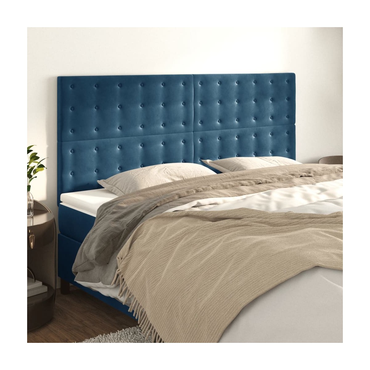 Estos cabeceros clásicos con un diseño elegante dan un aspecto completo a la estructura de tu cama y se adaptan a cualquier dormitorio. Terciopelo suave: El terciopelo es una tela suave y lujosa, reconocida por su denso pelo de fibras cortadas de forma uniforme que tienen una suave pelusa. La tela de terciopelo posee un característico y suave tacto, lo que hace que sea cómoda al tacto.Patas robustas y estables: Las patas de madera garantizan la robustez y la estabilidad.Altura regulable: El cabecero de la cama es ajustable en altura según tus preferencias.Excelente apoyo: El cabecero de la cama te proporciona un excelente apoyo para la espalda mientras estás sentado en la cama para leer o ver la televisión. Nota:La entrega incluye sólo el cabecero de la cama. La estructura de cama y el colchón no están incluidos. Puedes consultar en nuestra tienda las estructuras y colchones a juego.Cada producto viene con un manual de montaje en la caja para facilitar el montaje.