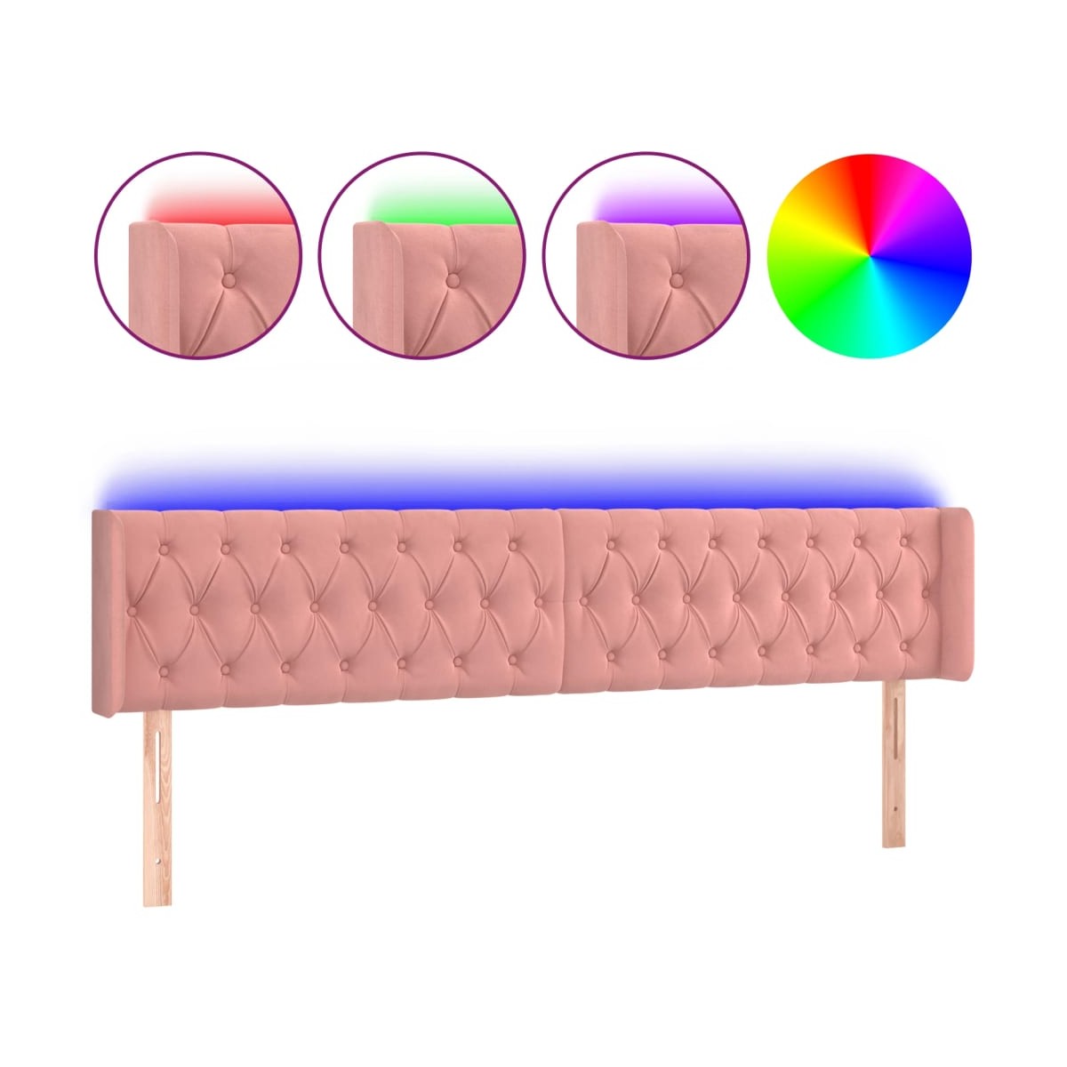 Este clásico cabecero con LED , con un diseño elegante, da a la estructura de tu cama un impresionante toque moderno y se adapta perfectamente a cualquier dormitorio. Terciopelo suave: El terciopelo es una tela suave y lujosa, reconocida por su denso pelo de fibras cortadas de forma uniforme que tienen una suave pelusa. La tela de terciopelo posee un característico y suave tacto, lo que hace que sea cómoda al tacto.LED de colores: Alegra la oscuridad con luces LED de colores.Altura regulable: El cabecero de la cama es ajustable en altura según tus preferencias.Excelente apoyo: El cabecero de la cama te proporciona un excelente apoyo para la espalda mientras estás sentado en la cama para leer o ver la televisión.Tira LED recortable: Puedes ajustar la longitud de esta tira LED flexible. El símbolo de las tijeras indica dónde se puede cortar la tira sin dañarla. Nota: La lona impermeable no está incluidaÚnicamente puedes cortar por la parte con el símbolo de las tijeras y únicamente la parte con el USB seguirá funcionando como antes.Cada producto viene con un manual de montaje en la caja para facilitar el montaje.El producto tiene un conector USB, pero no se incluye la fuente de alimentación USB de 5 V certificada.