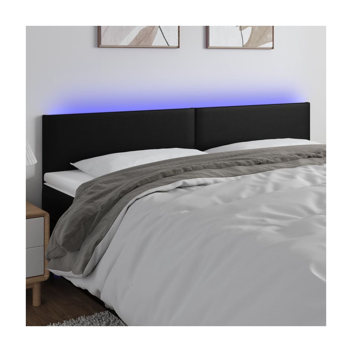 Este clásico cabecero con LED , con un diseño elegante, da a la estructura de tu cama un impresionante toque moderno y se adapta perfectamente a cualquier dormitorio. Material duradero: El cuero sintético de primera calidad es un material muy duradero. Es resistente a las manchas, por lo que es fácil de limpiar con un paño húmedo. Además, la superficie lisa da un aspecto lujoso y la belleza del cuero auténtico.LED de colores: Alegra la oscuridad con luces LED de colores.Altura regulable: El cabecero de la cama es ajustable en altura según tus preferencias.Excelente apoyo: El cabecero de la cama te proporciona un excelente apoyo para la espalda mientras estás sentado en la cama para leer o ver la televisión.Tira LED recortable: Puedes ajustar la longitud de esta tira LED flexible. El símbolo de las tijeras indica dónde se puede cortar la tira sin dañarla. Nota: La lona impermeable no está incluidaÚnicamente puedes cortar por la parte con el símbolo de las tijeras y únicamente la parte con el USB seguirá funcionando como antes.Cada producto viene con un manual de montaje en la caja para facilitar el montaje.El producto tiene un conector USB, pero no se incluye la fuente de alimentación USB de 5 V certificada.