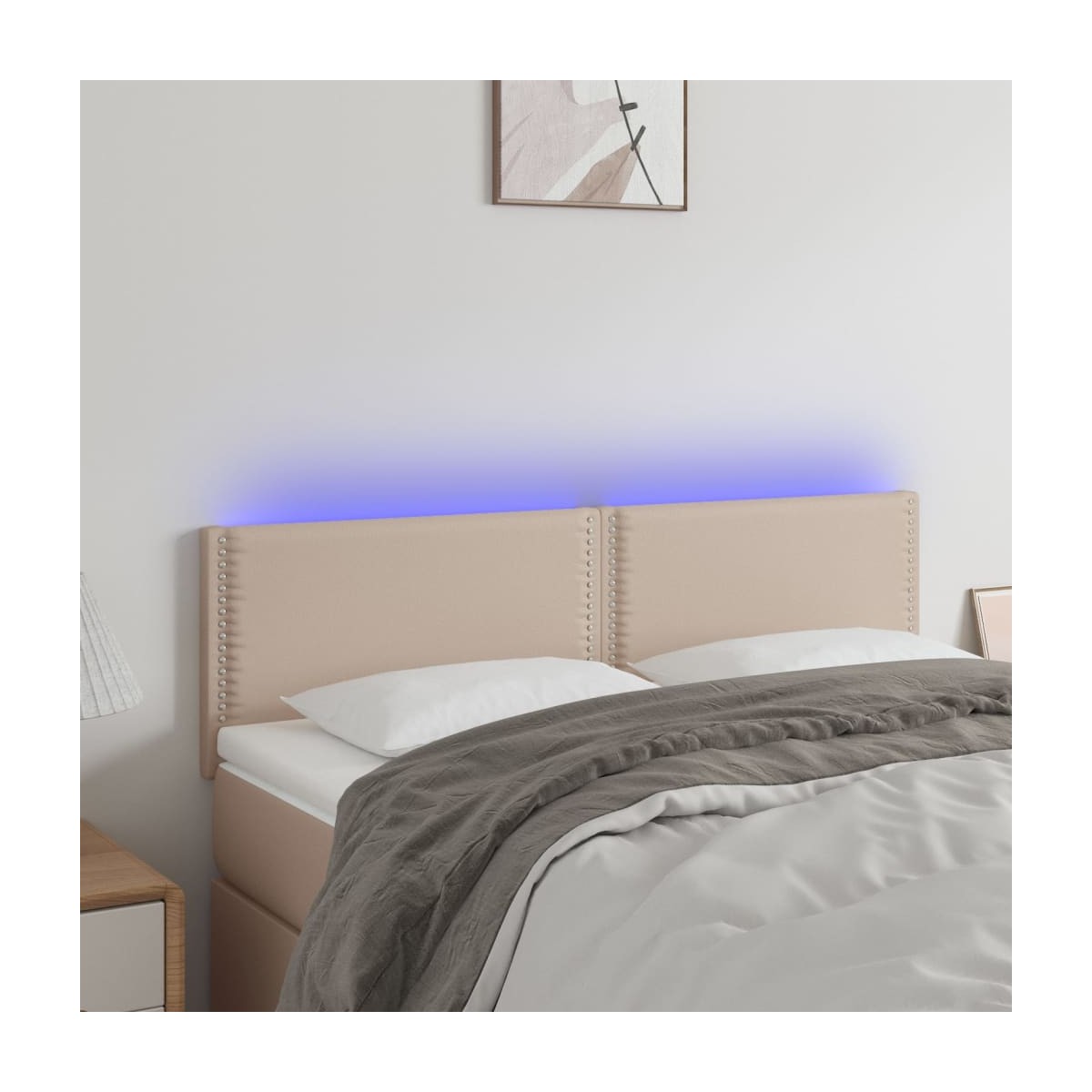 Este clásico cabecero con LED , con un diseño elegante, da a la estructura de tu cama un impresionante toque moderno y se adapta perfectamente a cualquier dormitorio. Material duradero: El cuero sintético de primera calidad es un material muy duradero. Es resistente a las manchas, por lo que es fácil de limpiar con un paño húmedo. Además, la superficie lisa da un aspecto lujoso y la belleza del cuero auténtico.LED de colores: Alegra la oscuridad con luces LED de colores.Altura regulable: El cabecero de la cama es ajustable en altura según tus preferencias.Excelente apoyo: El cabecero de la cama te proporciona un excelente apoyo para la espalda mientras estás sentado en la cama para leer o ver la televisión.Tira LED recortable: Puedes ajustar la longitud de esta tira LED flexible. El símbolo de las tijeras indica dónde se puede cortar la tira sin dañarla. Nota: La lona impermeable no está incluidaÚnicamente puedes cortar por la parte con el símbolo de las tijeras y únicamente la parte con el USB seguirá funcionando como antes.Cada producto viene con un manual de montaje en la caja para facilitar el montaje.El producto tiene un conector USB, pero no se incluye la fuente de alimentación USB de 5 V certificada.
