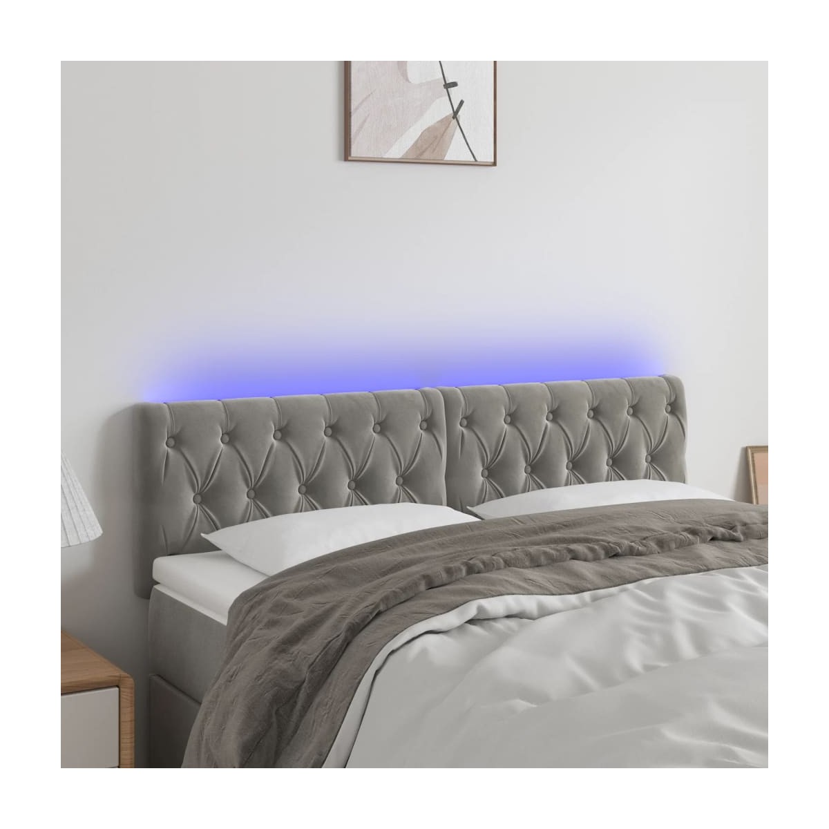 Este clásico cabecero con LED , con un diseño elegante, da a la estructura de tu cama un impresionante toque moderno y se adapta perfectamente a cualquier dormitorio. Terciopelo suave: El terciopelo es una tela suave y lujosa, reconocida por su denso pelo de fibras cortadas de forma uniforme que tienen una suave pelusa. La tela de terciopelo posee un característico y suave tacto, lo que hace que sea cómoda al tacto.LED de colores: Alegra la oscuridad con luces LED de colores.Altura regulable: El cabecero de la cama es ajustable en altura según tus preferencias.Excelente apoyo: El cabecero de la cama te proporciona un excelente apoyo para la espalda mientras estás sentado en la cama para leer o ver la televisión.Tira LED recortable: Puedes ajustar la longitud de esta tira LED flexible. El símbolo de las tijeras indica dónde se puede cortar la tira sin dañarla. Nota: La lona impermeable no está incluidaÚnicamente puedes cortar por la parte con el símbolo de las tijeras y únicamente la parte con el USB seguirá funcionando como antes.Cada producto viene con un manual de montaje en la caja para facilitar el montaje.El producto tiene un conector USB, pero no se incluye la fuente de alimentación USB de 5 V certificada.