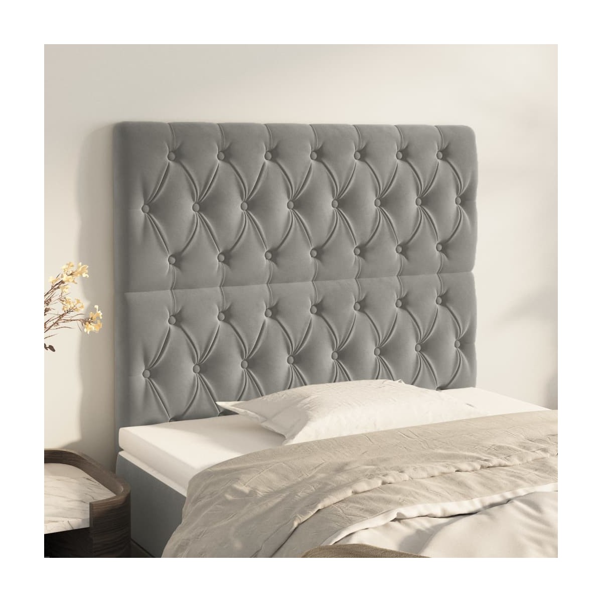 Estos cabeceros clásicos con un diseño elegante dan un aspecto completo a la estructura de tu cama y se adaptan a cualquier dormitorio. Terciopelo suave: El terciopelo es una tela suave y lujosa, reconocida por su denso pelo de fibras cortadas de forma uniforme que tienen una suave pelusa. La tela de terciopelo posee un característico y suave tacto, lo que hace que sea cómoda al tacto.Patas robustas y estables: Las patas de madera garantizan la robustez y la estabilidad.Altura regulable: El cabecero de la cama es ajustable en altura según tus preferencias.Excelente apoyo: El cabecero de la cama te proporciona un excelente apoyo para la espalda mientras estás sentado en la cama para leer o ver la televisión. Nota:La entrega incluye sólo el cabecero de la cama. La estructura de cama y el colchón no están incluidos. Puedes consultar en nuestra tienda las estructuras y colchones a juego.Cada producto viene con un manual de montaje en la caja para facilitar el montaje.