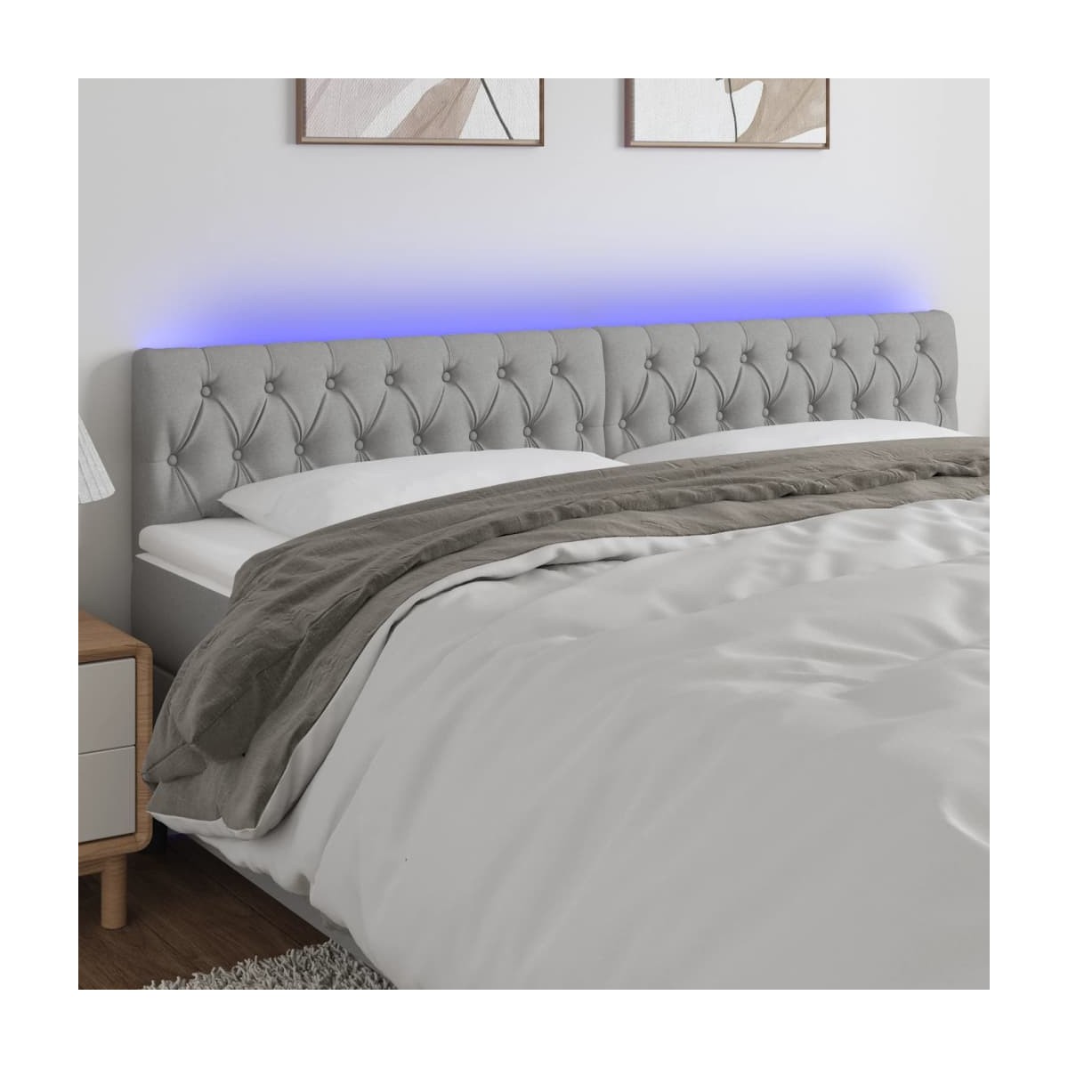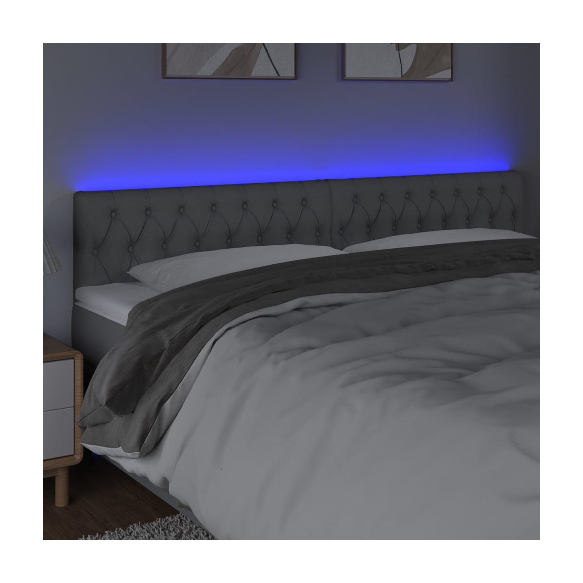 Este clásico cabecero con LED , con un diseño elegante, da a la estructura de tu cama un impresionante toque moderno y se adapta perfectamente a cualquier dormitorio. Material de primera calidad: La tela posee un aspecto sencillo y limpio, y es transpirable y duradera.LED de colores: Alegra la oscuridad con luces LED de colores.Altura regulable: El cabecero de la cama es ajustable en altura según tus preferencias.Excelente apoyo: El cabecero de la cama te proporciona un excelente apoyo para la espalda mientras estás sentado en la cama para leer o ver la televisión.Tira LED recortable: Puedes ajustar la longitud de esta tira LED flexible. El símbolo de las tijeras indica dónde se puede cortar la tira sin dañarla. Nota: La lona impermeable no está incluidaÚnicamente puedes cortar por la parte con el símbolo de las tijeras y únicamente la parte con el USB seguirá funcionando como antes.Cada producto viene con un manual de montaje en la caja para facilitar el montaje.El producto tiene un conector USB, pero no se incluye la fuente de alimentación USB de 5 V certificada.
