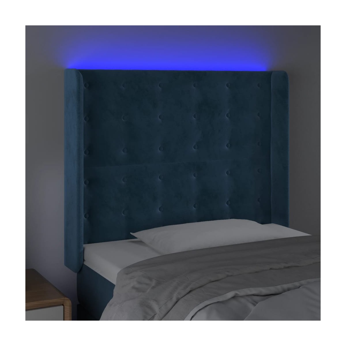 Este clásico cabecero con LED , con un diseño elegante, da a la estructura de tu cama un impresionante toque moderno y se adapta perfectamente a cualquier dormitorio. Terciopelo suave: El terciopelo es una tela suave y lujosa, reconocida por su denso pelo de fibras cortadas de forma uniforme que tienen una suave pelusa. La tela de terciopelo posee un característico y suave tacto, lo que hace que sea cómoda al tacto.LED de colores: Alegra la oscuridad con luces LED de colores.Altura regulable: El cabecero de la cama es ajustable en altura según tus preferencias.Excelente apoyo: El cabecero de la cama te proporciona un excelente apoyo para la espalda mientras estás sentado en la cama para leer o ver la televisión.Tira LED recortable: Puedes ajustar la longitud de esta tira LED flexible. El símbolo de las tijeras indica dónde se puede cortar la tira sin dañarla. Nota: La lona impermeable no está incluidaÚnicamente puedes cortar por la parte con el símbolo de las tijeras y únicamente la parte con el USB seguirá funcionando como antes.Cada producto viene con un manual de montaje en la caja para facilitar el montaje.El producto tiene un conector USB, pero no se incluye la fuente de alimentación USB de 5 V certificada.