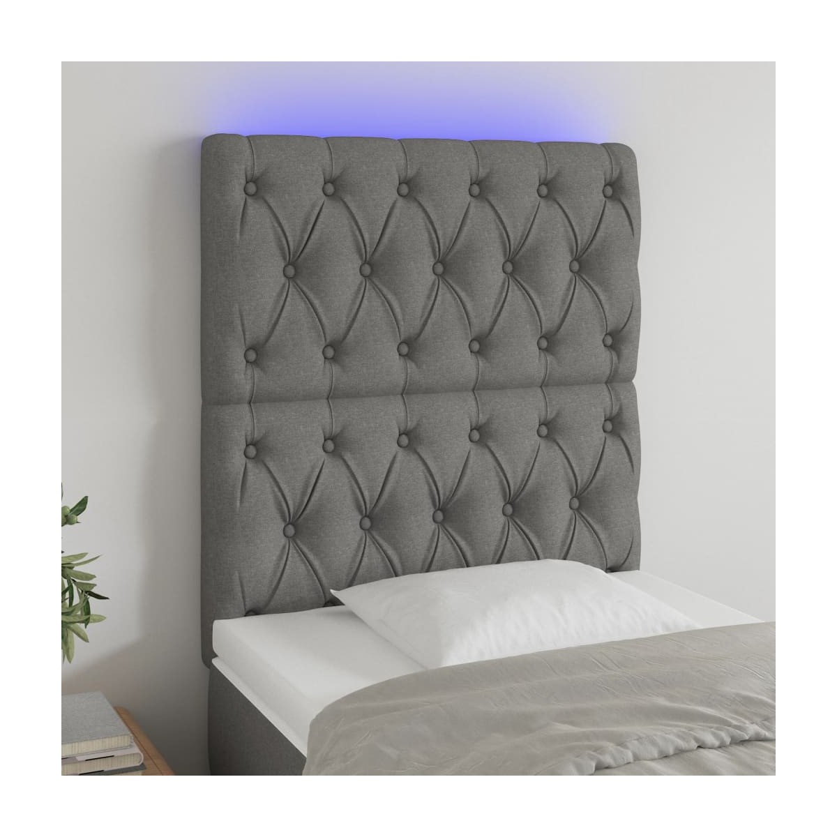 Este clásico cabecero con LED , con un diseño elegante, da a la estructura de tu cama un impresionante toque moderno y se adapta perfectamente a cualquier dormitorio. Material de primera calidad: La tela posee un aspecto sencillo y limpio, y es transpirable y duradera.LED de colores: Alegra la oscuridad con luces LED de colores.Altura regulable: El cabecero de la cama es ajustable en altura según tus preferencias.Excelente apoyo: El cabecero de la cama te proporciona un excelente apoyo para la espalda mientras estás sentado en la cama para leer o ver la televisión.Tira LED recortable: Puedes ajustar la longitud de esta tira LED flexible. El símbolo de las tijeras indica dónde se puede cortar la tira sin dañarla. Nota: La lona impermeable no está incluidaÚnicamente puedes cortar por la parte con el símbolo de las tijeras y únicamente la parte con el USB seguirá funcionando como antes.Cada producto viene con un manual de montaje en la caja para facilitar el montaje.El producto tiene un conector USB, pero no se incluye la fuente de alimentación USB de 5 V certificada.