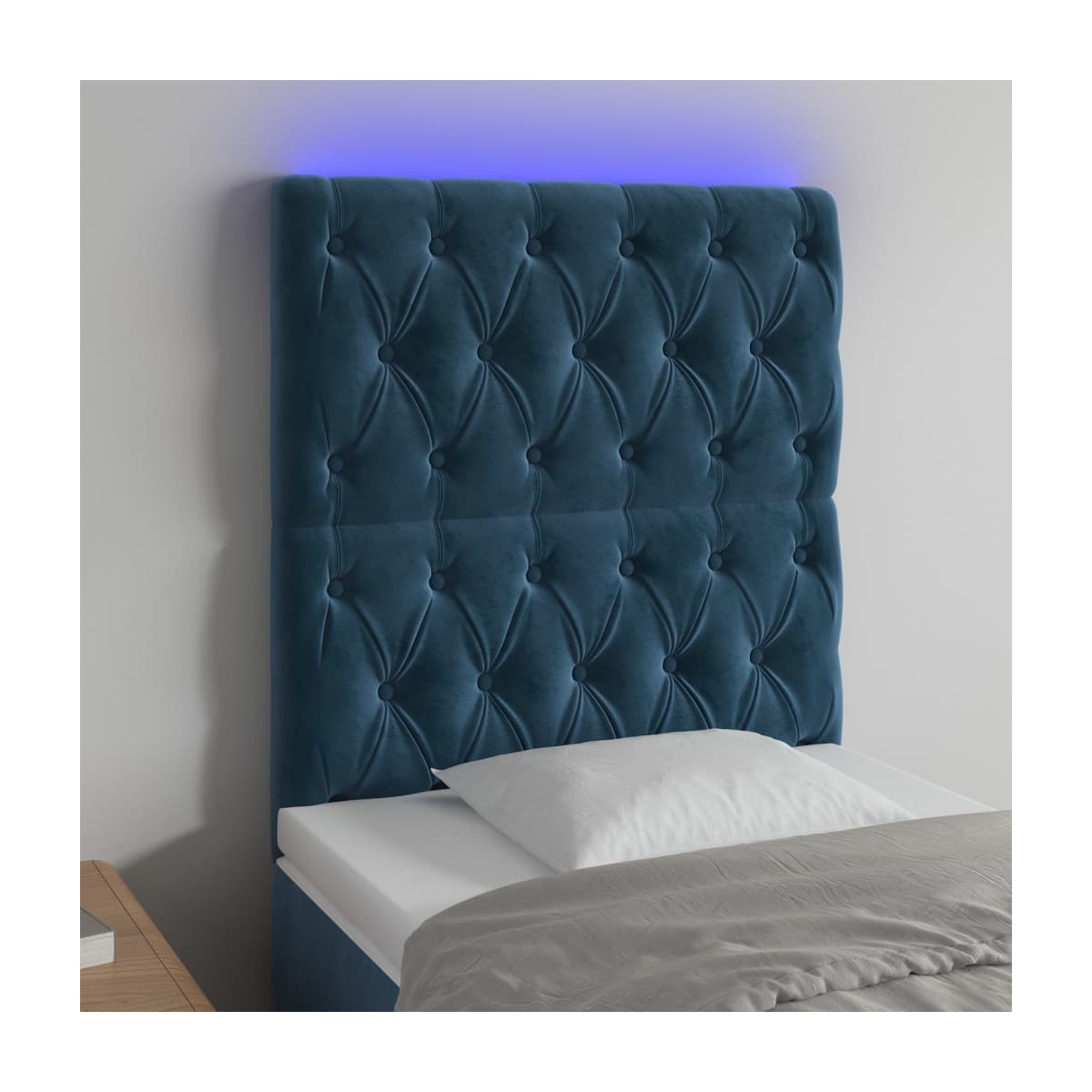 Este clásico cabecero con LED , con un diseño elegante, da a la estructura de tu cama un impresionante toque moderno y se adapta perfectamente a cualquier dormitorio. Terciopelo suave: El terciopelo es una tela suave y lujosa, reconocida por su denso pelo de fibras cortadas de forma uniforme que tienen una suave pelusa. La tela de terciopelo posee un característico y suave tacto, lo que hace que sea cómoda al tacto.LED de colores: Alegra la oscuridad con luces LED de colores.Altura regulable: El cabecero de la cama es ajustable en altura según tus preferencias.Excelente apoyo: El cabecero de la cama te proporciona un excelente apoyo para la espalda mientras estás sentado en la cama para leer o ver la televisión.Tira LED recortable: Puedes ajustar la longitud de esta tira LED flexible. El símbolo de las tijeras indica dónde se puede cortar la tira sin dañarla. Nota: La lona impermeable no está incluidaÚnicamente puedes cortar por la parte con el símbolo de las tijeras y únicamente la parte con el USB seguirá funcionando como antes.Cada producto viene con un manual de montaje en la caja para facilitar el montaje.El producto tiene un conector USB, pero no se incluye la fuente de alimentación USB de 5 V certificada.