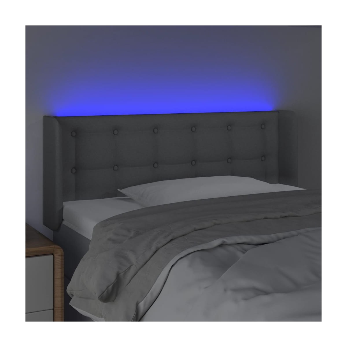 Este clásico cabecero con LED , con un diseño elegante, da a la estructura de tu cama un impresionante toque moderno y se adapta perfectamente a cualquier dormitorio. Material de primera calidad: La tela posee un aspecto sencillo y limpio, y es transpirable y duradera.LED de colores: Alegra la oscuridad con luces LED de colores.Altura regulable: El cabecero de la cama es ajustable en altura según tus preferencias.Excelente apoyo: El cabecero de la cama te proporciona un excelente apoyo para la espalda mientras estás sentado en la cama para leer o ver la televisión.Tira LED recortable: Puedes ajustar la longitud de esta tira LED flexible. El símbolo de las tijeras indica dónde se puede cortar la tira sin dañarla. Nota: La lona impermeable no está incluidaÚnicamente puedes cortar por la parte con el símbolo de las tijeras y únicamente la parte con el USB seguirá funcionando como antes.Cada producto viene con un manual de montaje en la caja para facilitar el montaje.El producto tiene un conector USB, pero no se incluye la fuente de alimentación USB de 5 V certificada.