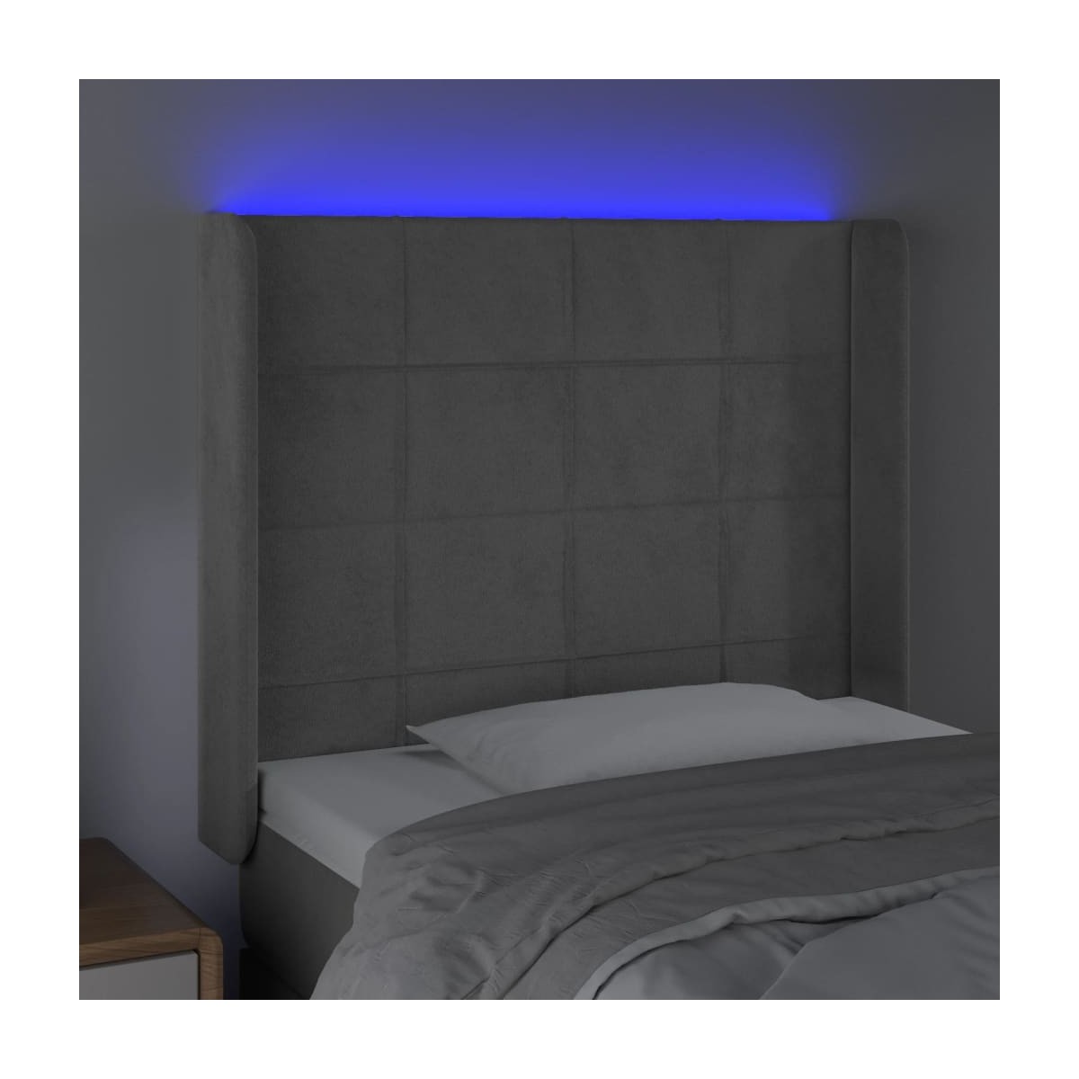 Este clásico cabecero con LED , con un diseño elegante, da a la estructura de tu cama un impresionante toque moderno y se adapta perfectamente a cualquier dormitorio. Terciopelo suave: El terciopelo es una tela suave y lujosa, reconocida por su denso pelo de fibras cortadas de forma uniforme que tienen una suave pelusa. La tela de terciopelo posee un característico y suave tacto, lo que hace que sea cómoda al tacto.LED de colores: Alegra la oscuridad con luces LED de colores.Altura regulable: El cabecero de la cama es ajustable en altura según tus preferencias.Excelente apoyo: El cabecero de la cama te proporciona un excelente apoyo para la espalda mientras estás sentado en la cama para leer o ver la televisión.Tira LED recortable: Puedes ajustar la longitud de esta tira LED flexible. El símbolo de las tijeras indica dónde se puede cortar la tira sin dañarla. Nota: La lona impermeable no está incluidaÚnicamente puedes cortar por la parte con el símbolo de las tijeras y únicamente la parte con el USB seguirá funcionando como antes.Cada producto viene con un manual de montaje en la caja para facilitar el montaje.El producto tiene un conector USB, pero no se incluye la fuente de alimentación USB de 5 V certificada.