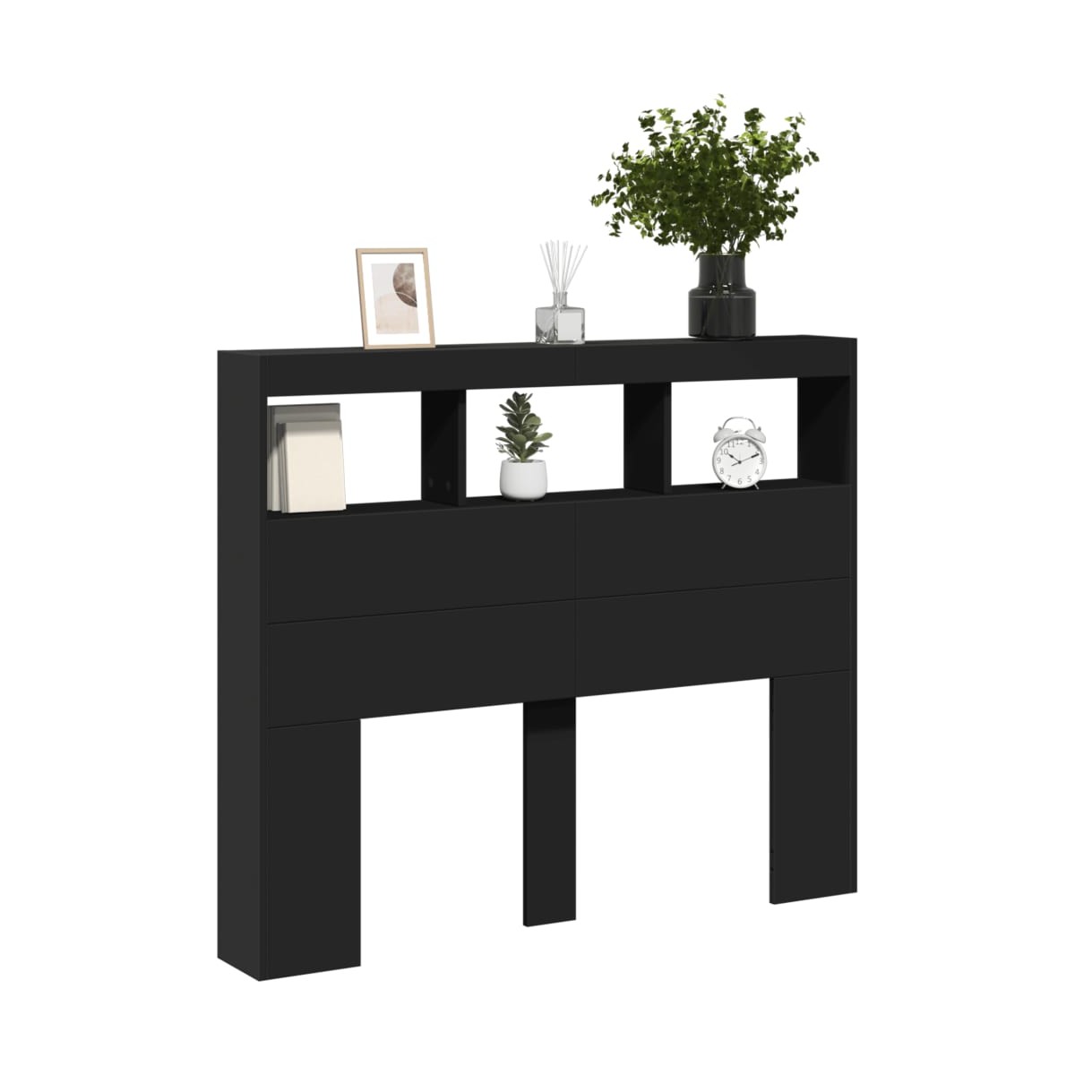 Este cabecero con luz LED, con un diseño elegante, le dará a tu cama un toque moderno y se adapta perfectamente a cualquier dormitorio. Material duradero: La madera de ingeniería tiene una calidad excepcional, con una superficie lisa y también cuenta con fuerza, estabilidad y resistencia a la humedad.Luces LED RGB: El cabecero está equipado con vibrantes luces LED RGB. Con diversos menús personalizables, puedes cambiar el color de las luces sin esfuerzo e incluso hacer que se regulen automáticamente. Estas luces LED no sólo realzan el aspecto contemporáneo del cabecero, sino que también le dan un toque a la moda.Amplio espacio de almacenamiento: Con compartimentos y una tapa resistente, el cabecero de la cama es perfecto para exhibir tus libros, artículos decorativos, marcos de fotos y despertadores.Excelente soporte: El cabecero de cama te ofrece un excelente soporte para la espalda cuando te sientas en la cama para leer o mirar la televisión. Información útil:La entrega incluye sólo el cabecero con LED. La estructura de cama y el colchón no están incluidos. Puedes consultar en nuestra tienda las estructuras y colchones a juego.El producto tiene un conector USB que necesita una fuente de alimentación USB certificada de 5 V (no incluida). Advertencia:Para evitar que vuelque, este producto debe usarse con el dispositivo de fijación a la pared suministrado.