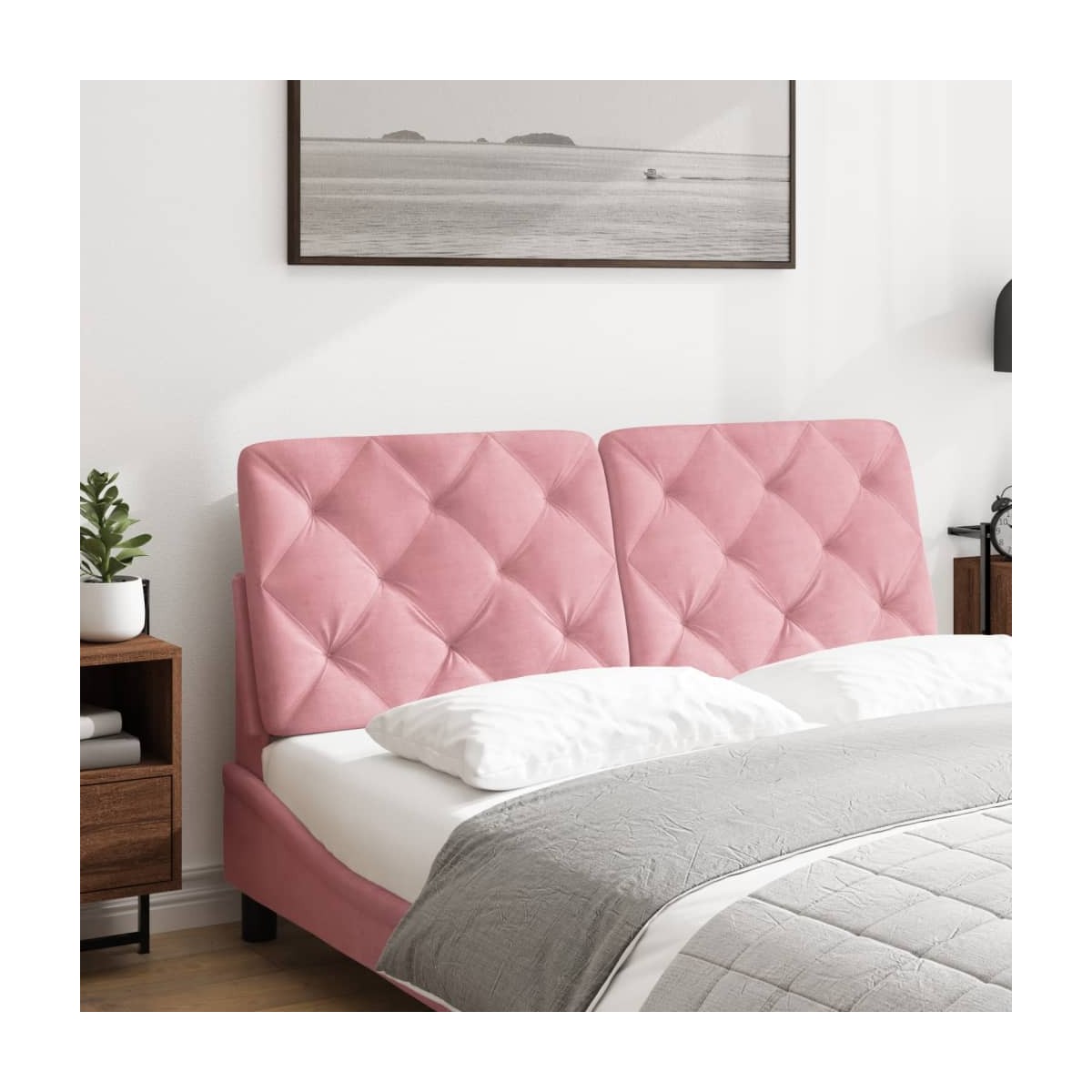 Este cabecero acolchado con un diseño elegante le da a tu cama un look completo y se adapta a cualquier dormitorio. Terciopelo suave: El terciopelo es una tela suave y cálida, agradable al tacto. Excelente soporte: El cabecero acolchado está relleno de espuma para una comodidad ultrasuave y óptima, lo que te brinda un excelente soporte para la espalda mientras estás sentado en la cama para leer o ver la televisión. Diseño práctico: El cabecero acolchado tiene una cremallera para una fácil instalación, y los cierres de gancho y bucle en la parte posterior se pueden usar para colocar las luces LED. Instalación versátil: El cabecero acolchado de cama se puede colgar en la pared con las correas incluidas para adaptarse a cualquier estilo de cama. También puedes usarlo con un cabecero del somier curvo en nuestra tienda, simplemente quita la funda de tela original del cabecero y cúbrelo con este acolchado para la cabeza, ¡y tendrás un cabecero cómodo! Belleza clásica: Los bloques romboidales con puntas añaden belleza clásica al cabecero tapizado. Información útil:La entrega incluye solo cojín para la cabeza. La estructura de la cama y el colchón no están incluidos. Puedes consultar nuestra tienda para ver las camas y colchones a juego.