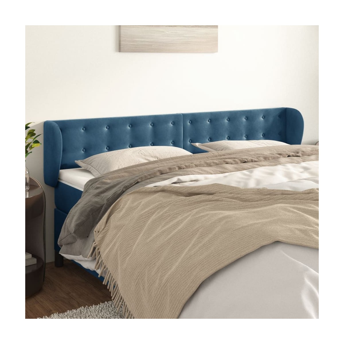 Este cabecero con orejas clásico con un diseño elegante da un aspecto completo a la estructura de tu cama y se adapta a cualquier dormitorio. Terciopelo suave: El terciopelo es una tela suave y lujosa, reconocida por su denso pelo de fibras cortadas de forma uniforme que tienen una suave pelusa. La tela de terciopelo posee un característico y suave tacto, lo que hace que sea cómoda al tacto.Patas robustas y estables: Las patas de madera garantizan la robustez y la estabilidad.Altura regulable: El cabecero de la cama es ajustable en altura según tus preferencias.Excelente apoyo: El cabecero de la cama te proporciona un excelente apoyo para la espalda mientras estás sentado en la cama para leer o ver la televisión. Nota:La entrega incluye sólo el cabecero de la cama. La estructura de cama y el colchón no están incluidos. Puedes consultar en nuestra tienda las estructuras y colchones a juego.Cada producto viene con un manual de montaje en la caja para facilitar el montaje.