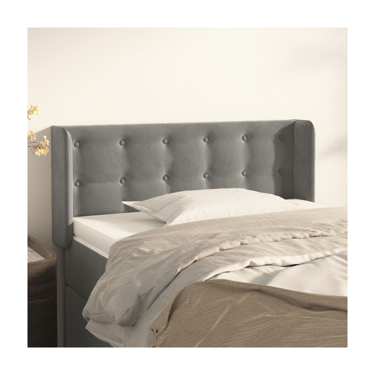 Este cabecero con orejas clásico con un diseño elegante da un aspecto completo a la estructura de tu cama y se adapta a cualquier dormitorio. Terciopelo suave: El terciopelo es una tela suave y lujosa, reconocida por su denso pelo de fibras cortadas de forma uniforme que tienen una suave pelusa. La tela de terciopelo posee un característico y suave tacto, lo que hace que sea cómoda al tacto.Patas robustas y estables: Las patas de madera garantizan la robustez y la estabilidad.Altura regulable: El cabecero de la cama es ajustable en altura según tus preferencias.Excelente apoyo: El cabecero de la cama te proporciona un excelente apoyo para la espalda mientras estás sentado en la cama para leer o ver la televisión. Nota:La entrega incluye sólo el cabecero de la cama. La estructura de cama y el colchón no están incluidos. Puedes consultar en nuestra tienda las estructuras y colchones a juego.Cada producto viene con un manual de montaje en la caja para facilitar el montaje.