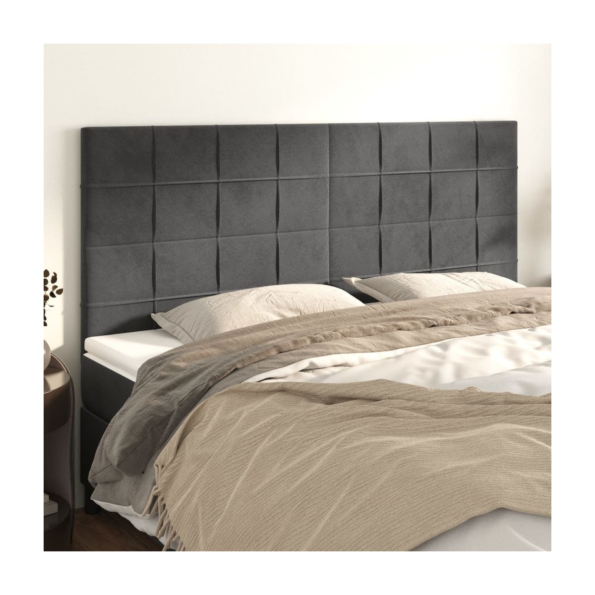 Estos cabeceros clásicos con un diseño elegante dan un aspecto completo a la estructura de tu cama y se adaptan a cualquier dormitorio. Terciopelo suave: El terciopelo es una tela suave y lujosa, reconocida por su denso pelo de fibras cortadas de forma uniforme que tienen una suave pelusa. La tela de terciopelo posee un característico y suave tacto, lo que hace que sea cómoda al tacto.Patas robustas y estables: Las patas de madera garantizan la robustez y la estabilidad.Altura regulable: El cabecero de la cama es ajustable en altura según tus preferencias.Excelente apoyo: El cabecero de la cama te proporciona un excelente apoyo para la espalda mientras estás sentado en la cama para leer o ver la televisión. Nota:La entrega incluye sólo el cabecero de la cama. La estructura de cama y el colchón no están incluidos. Puedes consultar en nuestra tienda las estructuras y colchones a juego.Cada producto viene con un manual de montaje en la caja para facilitar el montaje.