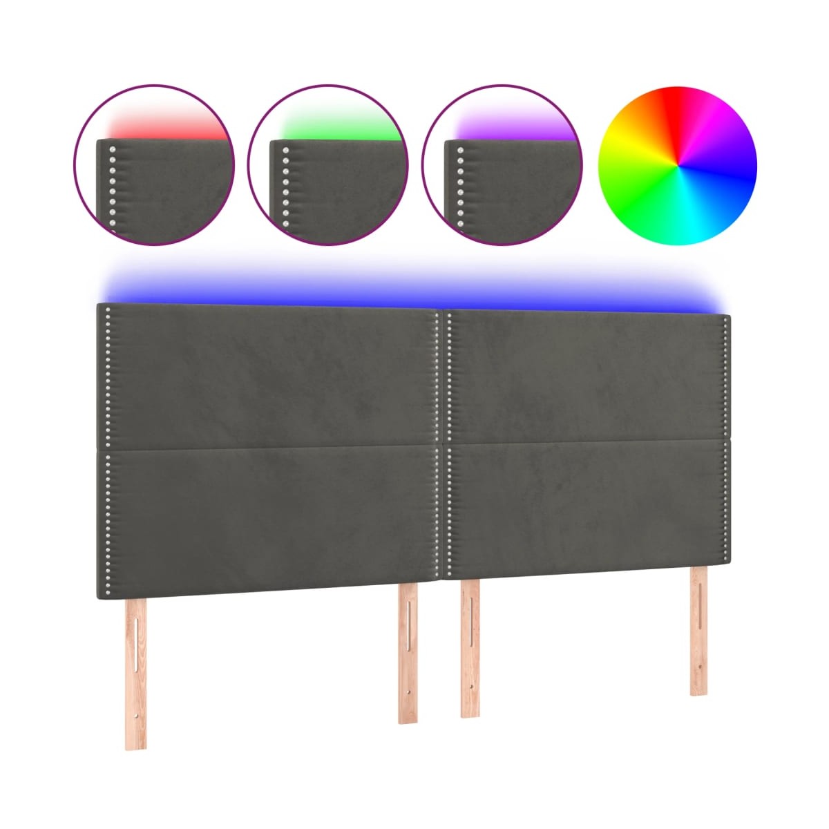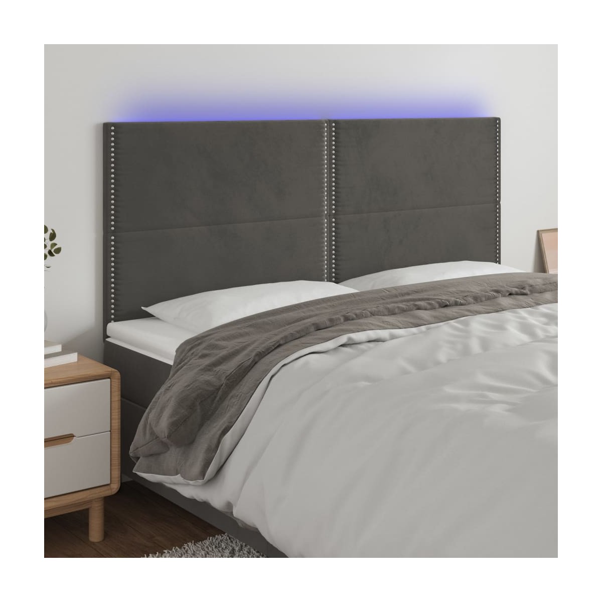 Este clásico cabecero con LED , con un diseño elegante, da a la estructura de tu cama un impresionante toque moderno y se adapta perfectamente a cualquier dormitorio. Terciopelo suave: El terciopelo es una tela suave y lujosa, reconocida por su denso pelo de fibras cortadas de forma uniforme que tienen una suave pelusa. La tela de terciopelo posee un característico y suave tacto, lo que hace que sea cómoda al tacto.LED de colores: Alegra la oscuridad con luces LED de colores.Altura regulable: El cabecero de la cama es ajustable en altura según tus preferencias.Excelente apoyo: El cabecero de la cama te proporciona un excelente apoyo para la espalda mientras estás sentado en la cama para leer o ver la televisión.Tira LED recortable: Puedes ajustar la longitud de esta tira LED flexible. El símbolo de las tijeras indica dónde se puede cortar la tira sin dañarla. Nota: La lona impermeable no está incluidaÚnicamente puedes cortar por la parte con el símbolo de las tijeras y únicamente la parte con el USB seguirá funcionando como antes.Cada producto viene con un manual de montaje en la caja para facilitar el montaje.El producto tiene un conector USB, pero no se incluye la fuente de alimentación USB de 5 V certificada.