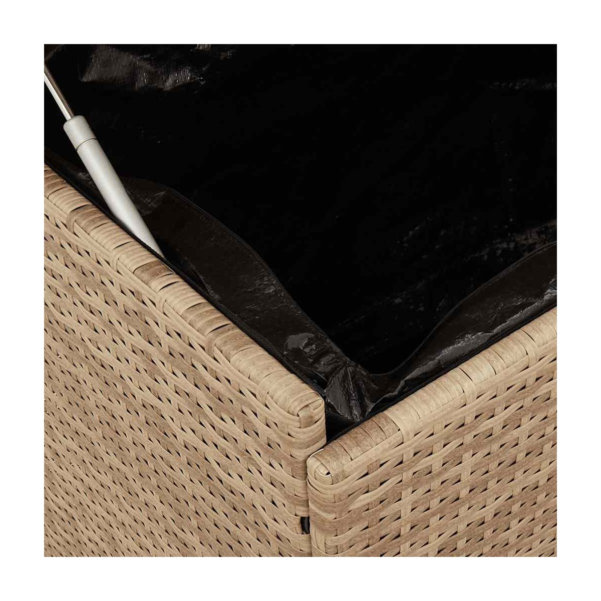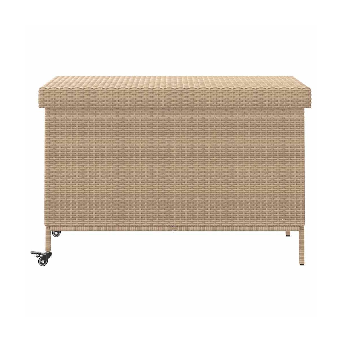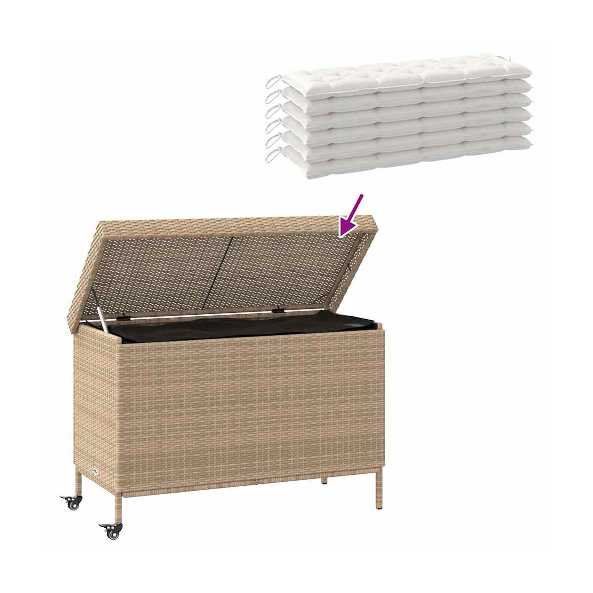 Esta caja de almacenaje de jardín es ideal para guardar cojines, almohadas, mantas, y otros objetos en el jardín o el patio. Material duradero: El ratán sintético, también conocido como ratán sintético, es un material sintético resistente y de bajo mantenimiento que se parece al ratán natural. Es ligero, fácil de limpiar y se usa comúnmente para muebles de exterior debido a su durabilidad y propiedades resistentes a la intemperie.Función de almacenamiento: Los muebles de jardín cuentan con un espacio de almacenamiento debajo, equipado con una bolsa resistente al agua para guardar cojines, juguetes y otros artículos. La bolsa interior se puede fijar de forma segura al asiento con cierres de gancho y bucle, lo que garantiza la estabilidad y evita el movimiento.Seguro y fácil de abrir y cerrar: El resorte de gas facilita la apertura de la tapa y evita que se cierre de golpe o atrape los dedos.Fácil de mover: esta caja de almacenamiento para exteriores cuenta con dos ruedas con frenos, lo que permite una reubicación sin esfuerzo a cualquier ubicación deseada mientras se bloquea de forma segura en su lugar para un mejor control y seguridad. Además el asa facilita su transporte.Estructura robusta y estable: La estructura de acero con recubrimiento en polvo garantiza que el mueble de jardín sea resistente y estable para usarlo a diario al aire libre. Información útil:Para asegurarte de que tus muebles de exterior se mantengan hermosos, recomendamos protegerlos con una funda impermeable.